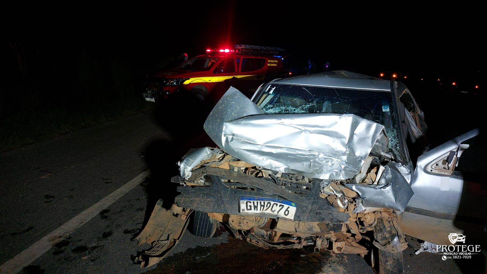 Um veículo de passeio bateu de frente com um carreta na noite desse domingo (22) e deixou pelo menos três pessoas feridas. A batida foi no Km 75 da rodovia, local conhecido como "Abacaxi". O Corpo de Bombeiros e o Samu tiveram ser acionados para socorrer as vítimas.