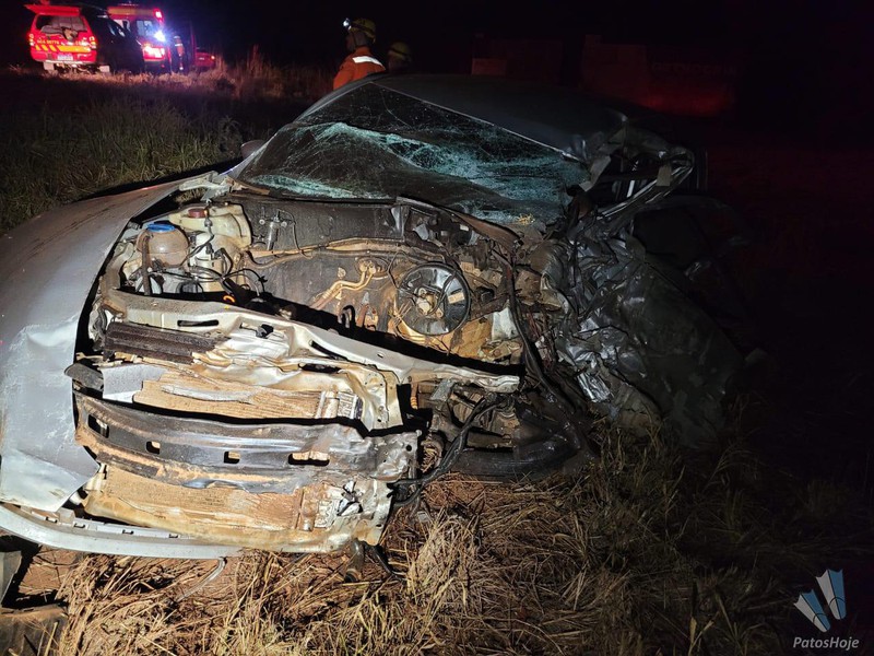 Em seguida chegou ao local uma Unidade do SAMU, sendo constatado o óbito do condutor de 29 anos, que conduzia o automóvel VW GOL emplacado em Patos de Minas. Foi realizado o atendimento pela equipe do SAMU a passageira de 31 anos, esposa do condutor do VW GOL, conduzindo-a para o Hospital Regional em Patos de Minas.