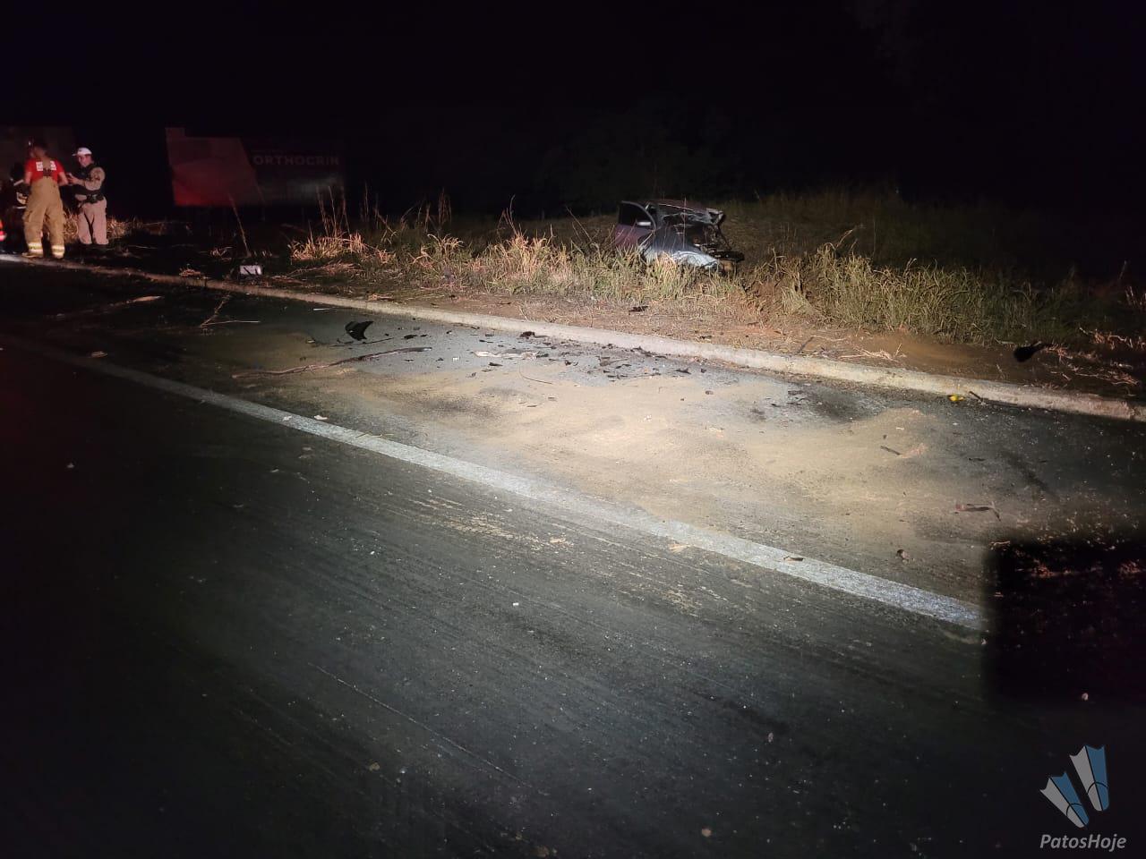 O trágico acidente aconteceu na madrugada desta sexta-feira (19) no km 182 da BR 352, em Patos de Minas. O motorista do carro faleceu no local e a esposa dele ficou gravemente ferida. O automóvel em que eles estavam atingiu um caminhão que seguia em sentido contrário.