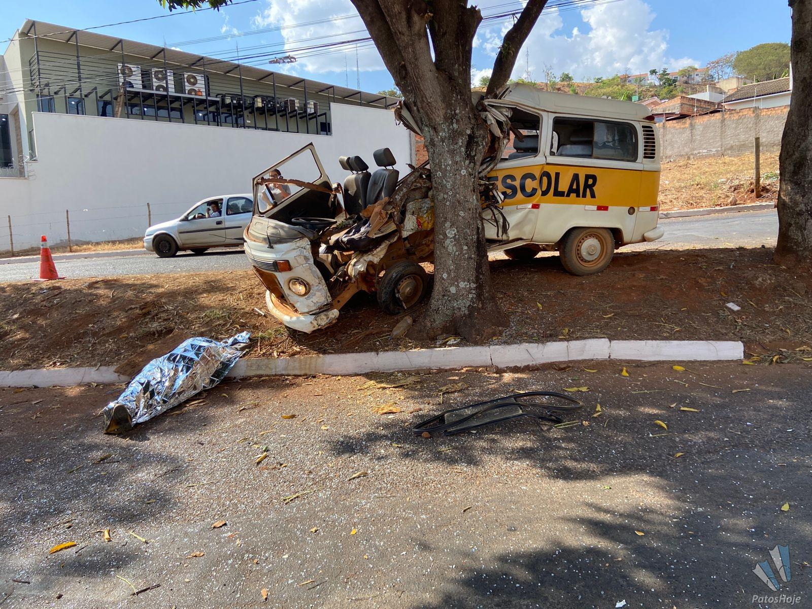 Patos de Minas registrou mais uma tragédia no trânsito. Nesta quinta-feira (18), o motorista de uma Kombi acabou falecendo após o veículo bater violentamente contra uma árvore. Uma passageira também ficou ferida e precisou ser socorrida.