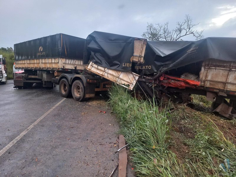 Um grave acidente na madrugada desta sexta-feira (25) tirou a vida de um caminhoneiro de apenas 29 anos. O acidente aconteceu por volta de 4h45, no km 353 da BR-354, na divisa entre os municípios de Campos Altos e São Gotardo. Uma carreta bitrem e dois caminhões se envolveram na batida que mobilizando equipes do Corpo de Bombeiros e SAMU.