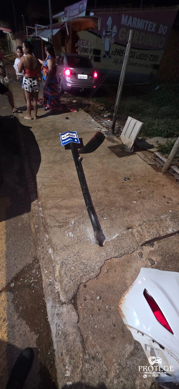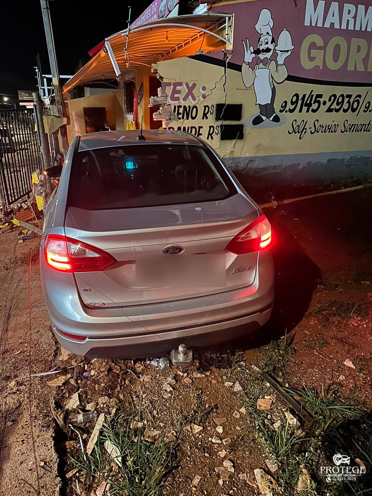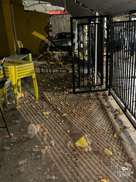 Desorientado, o motorista subiu na calçada e bateu na traseira de um veículo estacionado. Em seguida, atingiu uma placa de parada de ônibus, que ficou completamente destruída. O veículo só parou após bater contra o muro do estabelecimento, causando grandes danos à estrutura, ao portão, à cerca elétrica, ao padrão de energia e cavalete de água, que chegou a ser rompido e provocar vazamento.