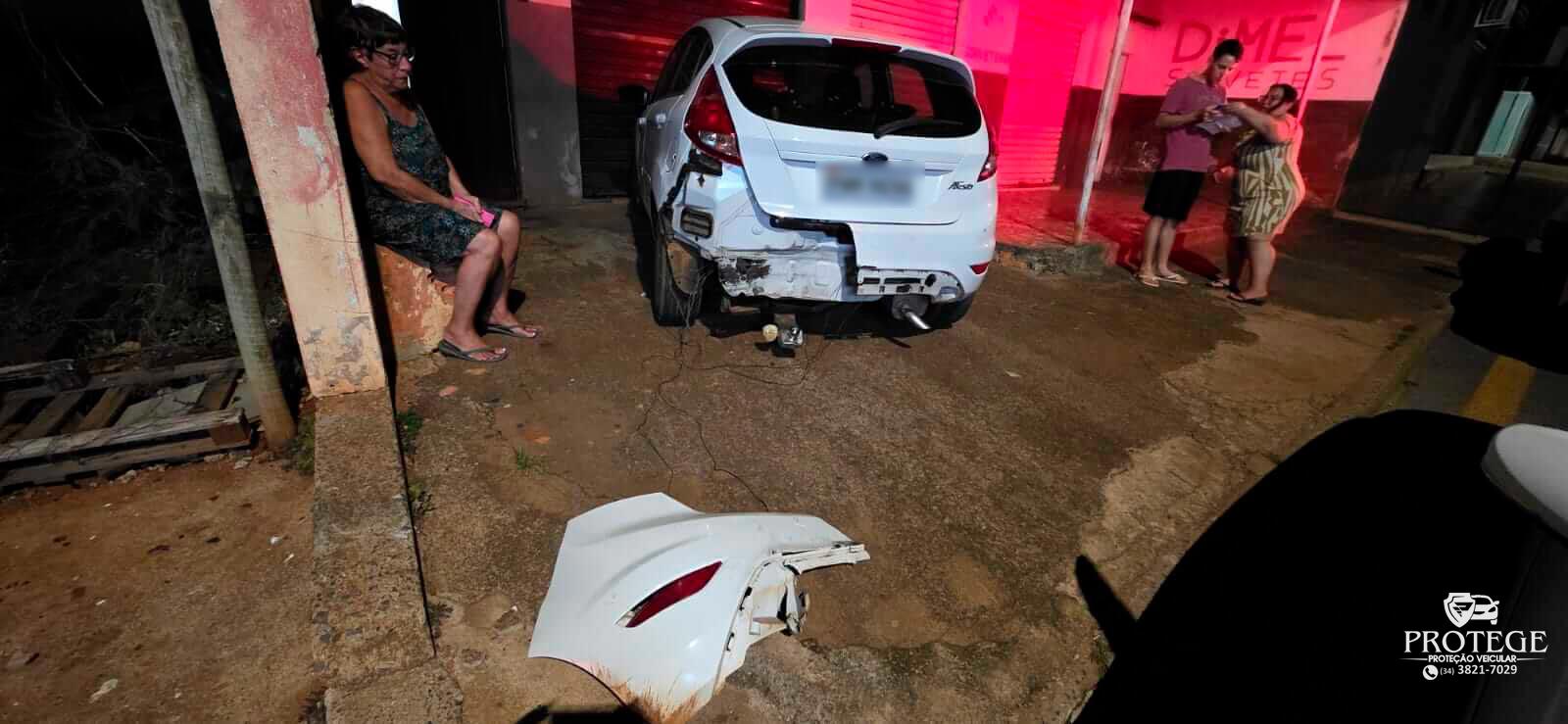 Um acidente de trânsito deixou danos significativos em um imóvel na noite deste domingo (30) na Rua Alzino Martelo, no bairro Nova Floresta, em Patos de Minas. Um motorista de 56 anos perdeu o controle da direção após sofrer um mal súbito e acabou atingindo um carro estacionado, derrubando uma placa de ponto de ônibus e batendo violentamente contra o muro de um comércio.