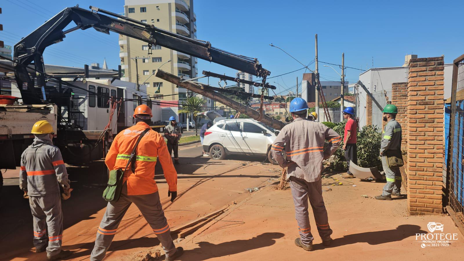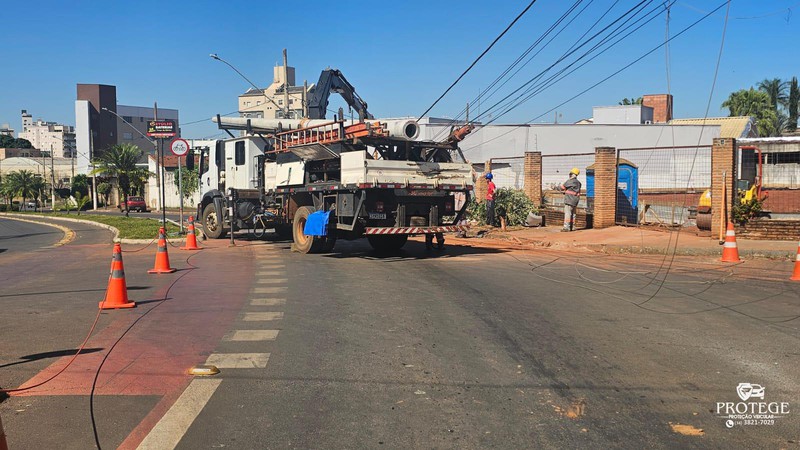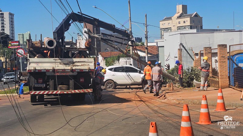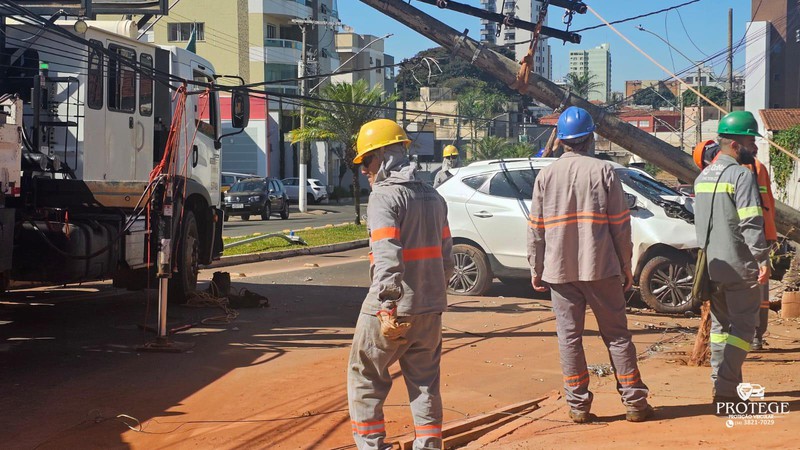 Moradores das imediações da avenida Padre Almir amanheceram sem energia elétrica na manhã deste domingo (19). É que um poste de iluminação pública foi destruído por um veículo de passeio e obrigou funcionários da Cemig a atuarem.