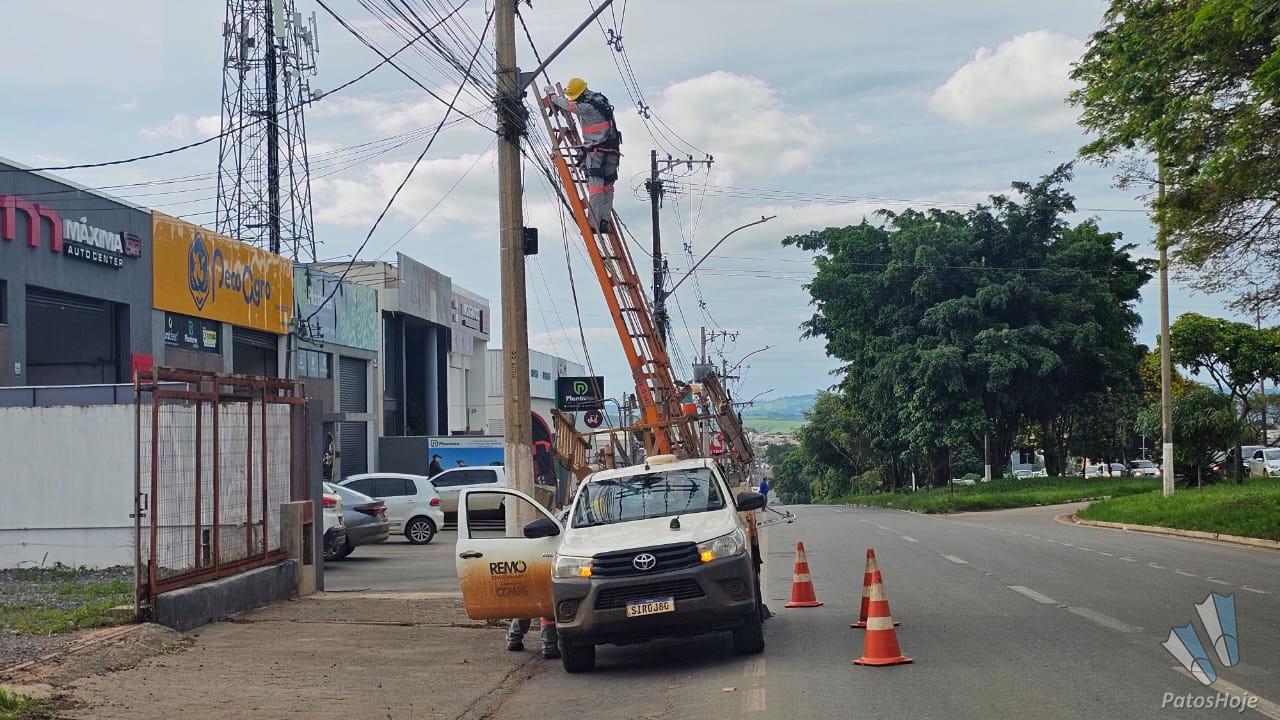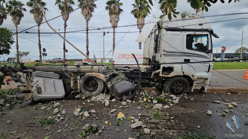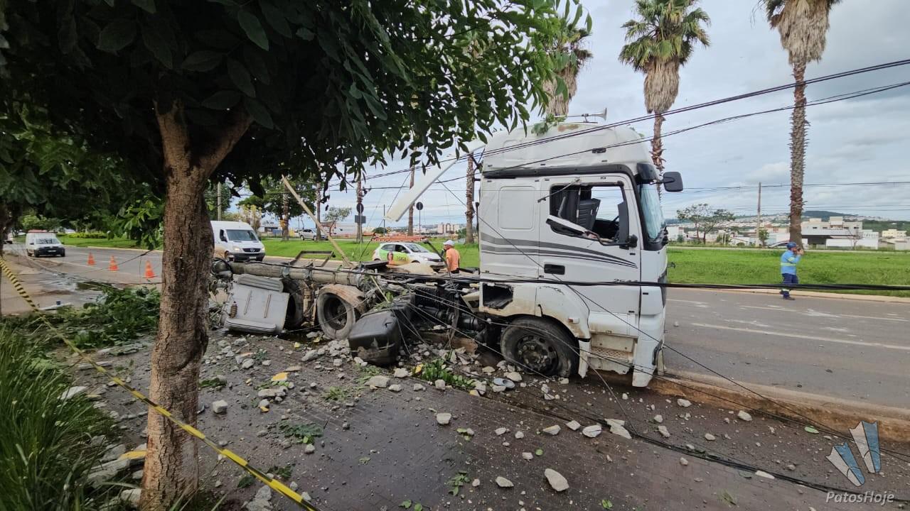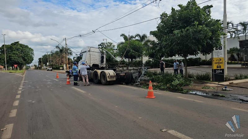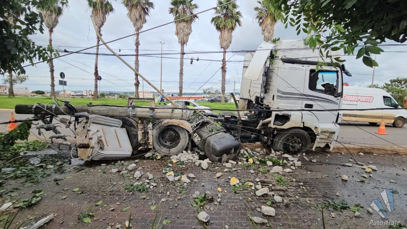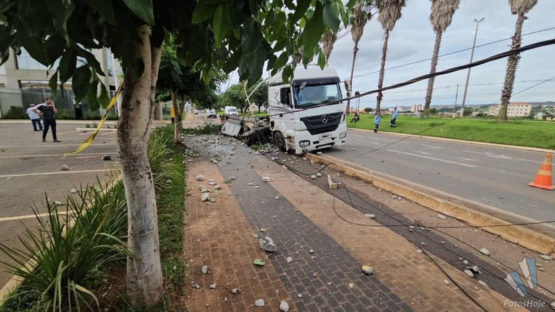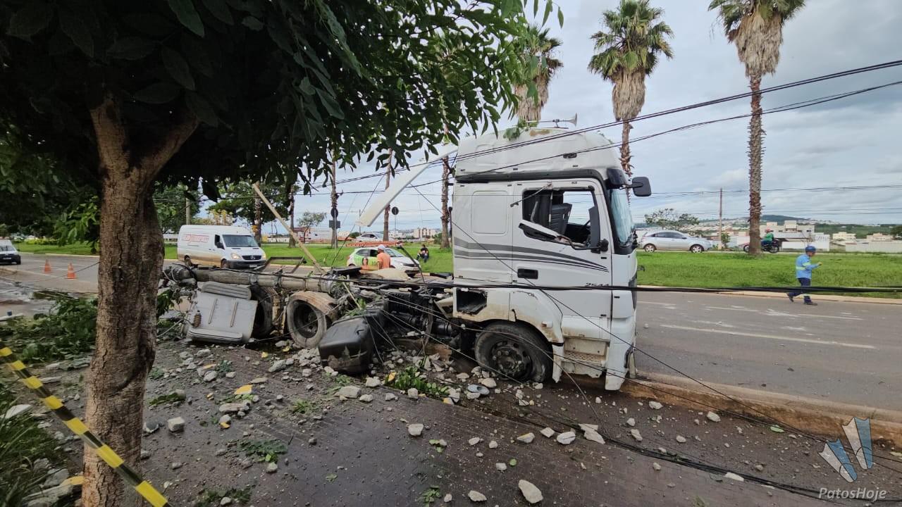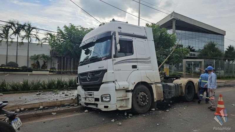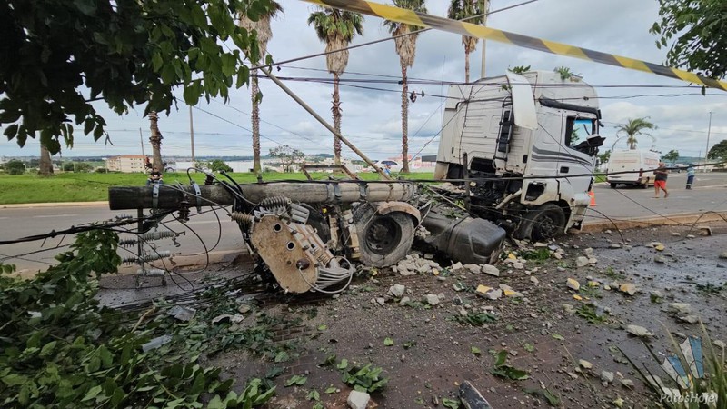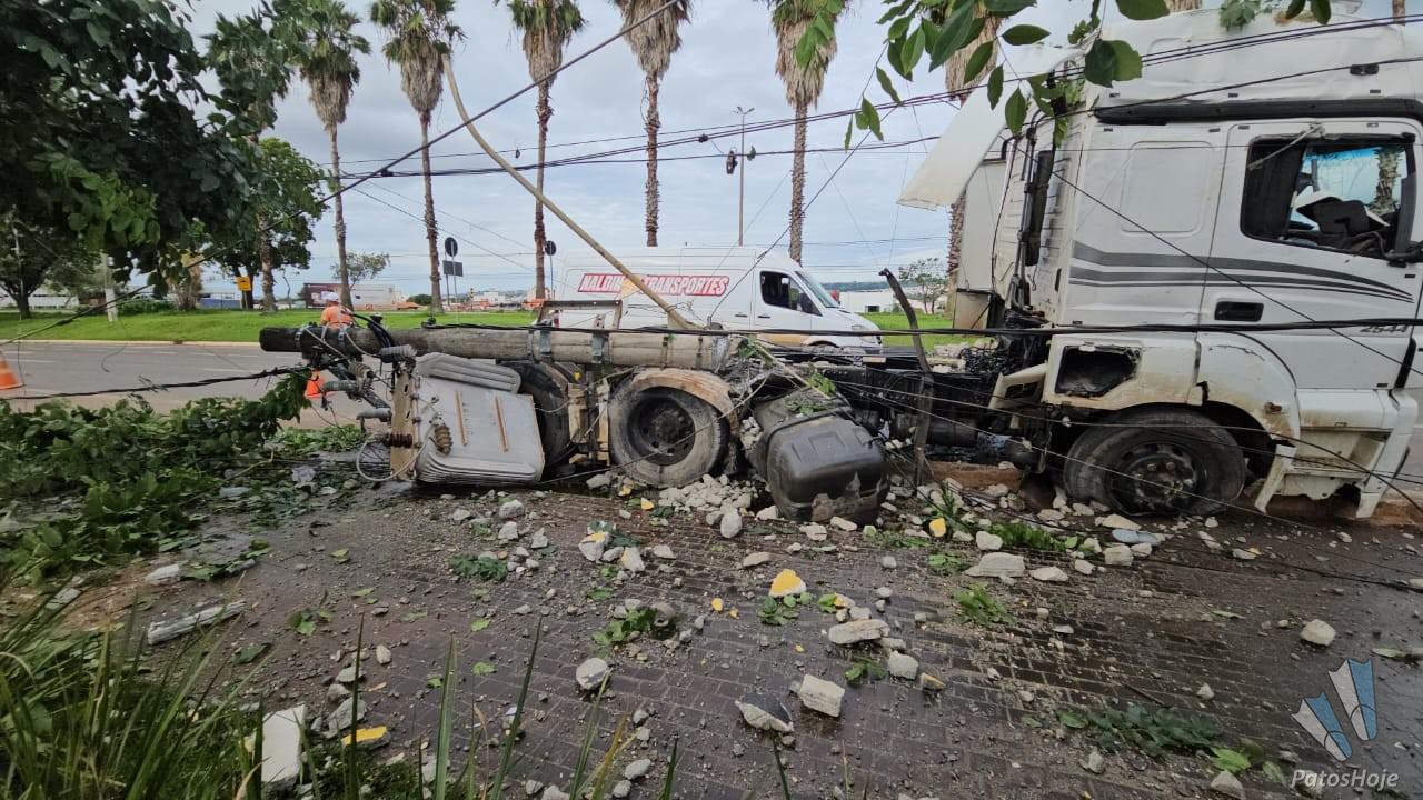 O acidente deixou a região sem energia elétrica e fez estragos. Estilhaços do poste arrancado atingiram uma caminhonete que estava estacionada.