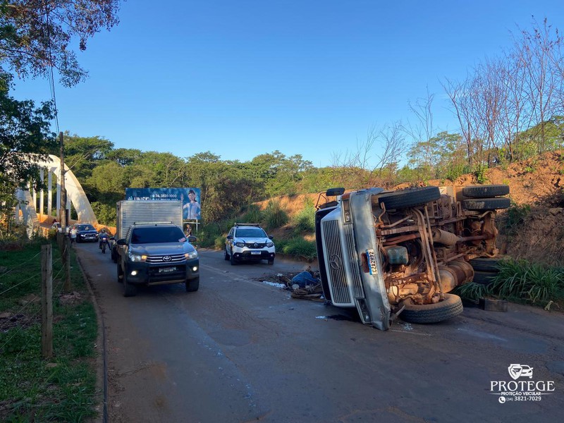 O acidente aconteceu por volta de 17h desta quinta-feira (13). A informação passada por testemunhas é de que o motorista do caminhão perdeu o controle da direção e acabou tombando logo após a ponte. Em seguida, a carga espalhou pela pista. O tanque acabou sendo danificado e vazou combustível. O Corpo de Bombeiros foi acionado para limpar o óleo, evitando novos acidentes.