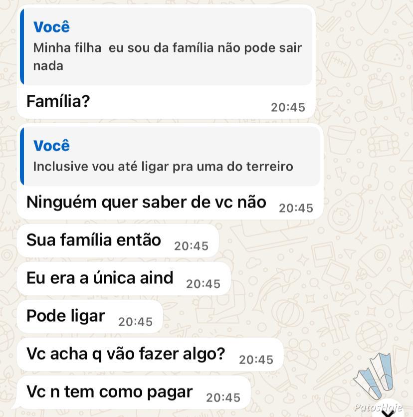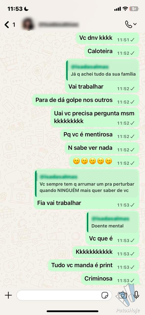 Após passar por um momento de luto, uma mulher em Patos de Minas passou a enfrentar um grande martírio emocional e também de prejuízo financeiro. Ela já fez vários pix para a acusada e disse que ela não para de exigir mais dinheiro. Além disso, ela faz ameaças de divulgar questões pessoais da vítima ou fazer novos trabalhos espirituais contra ela. A acusada entrou em contato com o Patos Hoje e disse que a história é bem diferente, negando as ameaças ou novos trabalhos espirituais contra ela.