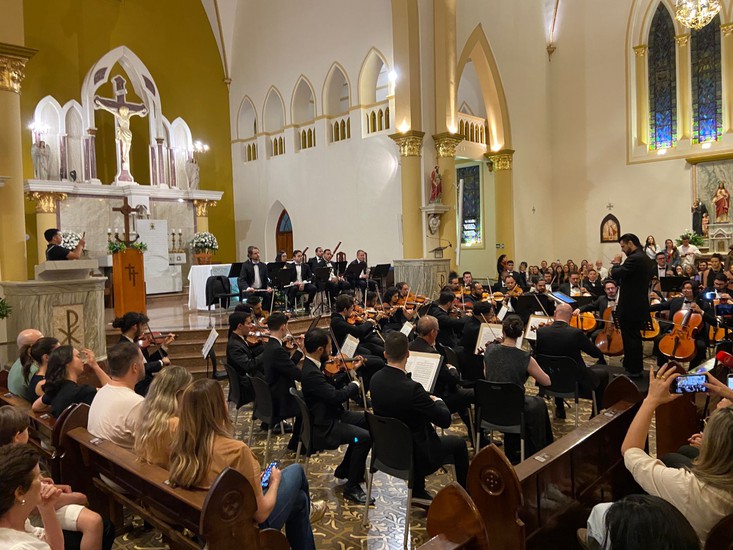 Orquestra filarmônica de Patos de Minas se apresenta na Catedral; veja ao vivo