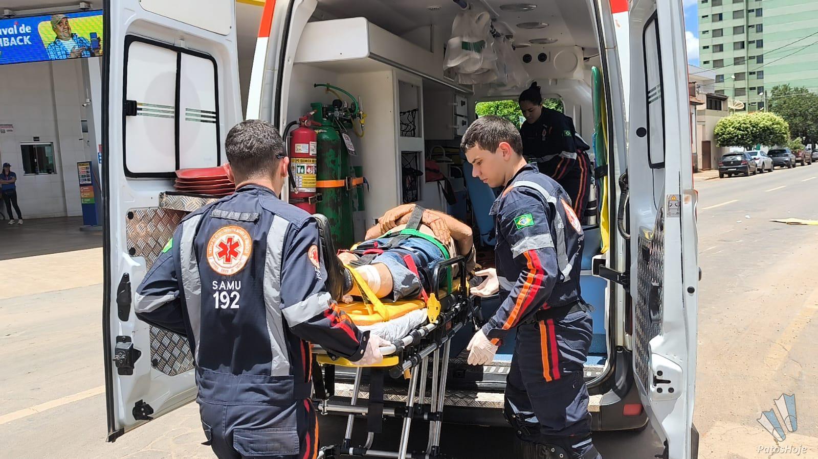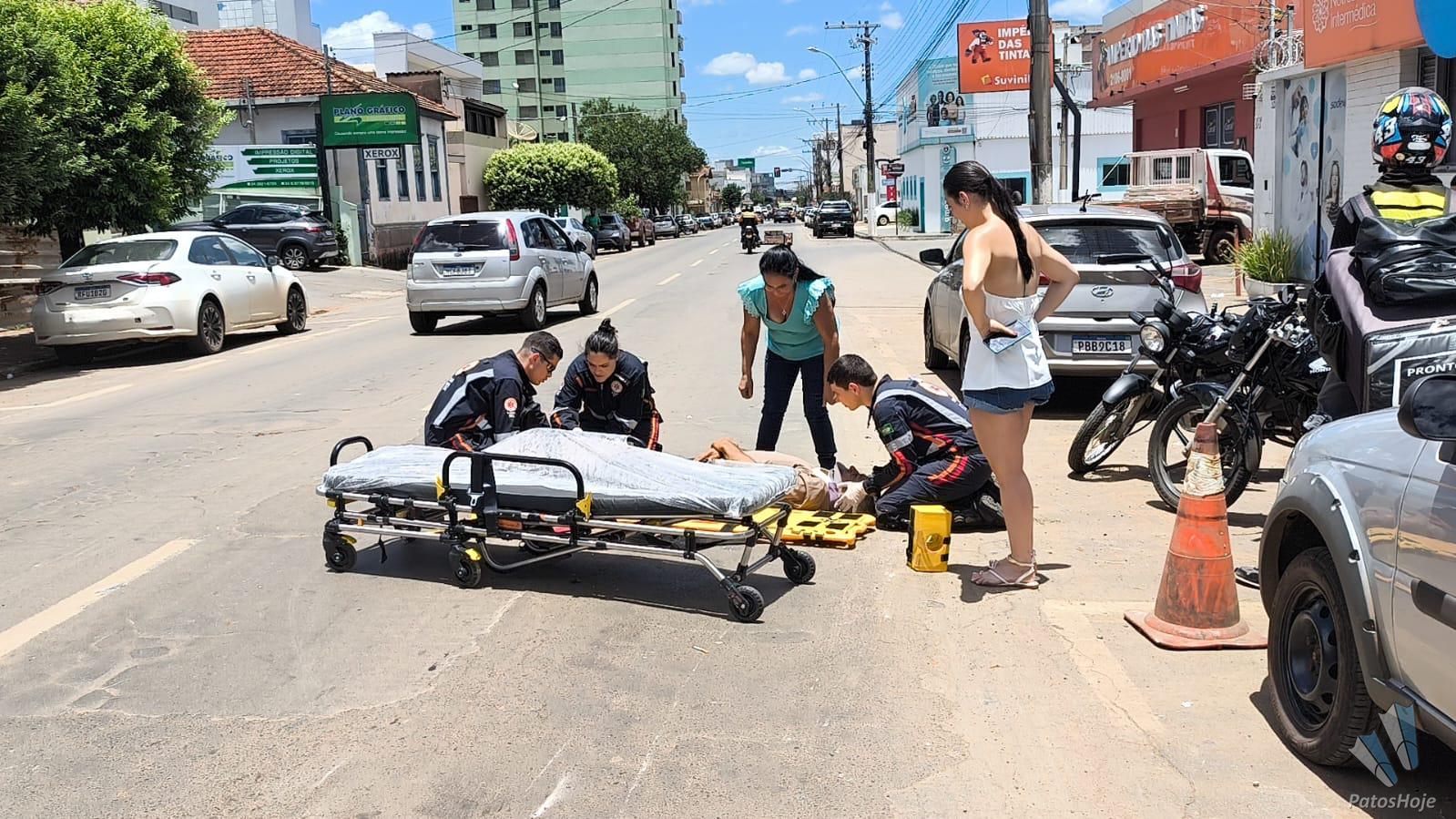 Com o impacto, eles caíram ao solo. O senhor que seguia na Rua José de Santana em sentido ao Bairro Várzea sofreu escoriações nas mãos, membros, costas e suspeita de fratura na perna direita. Familiares e pessoas que passavam pelo local o ampararam até a chegada do SAMU. Ele foi imobilizado e socorrido até a Santa Casa de Misericórdia. A motocicleta ficou com a frente danificada.