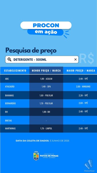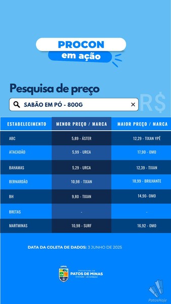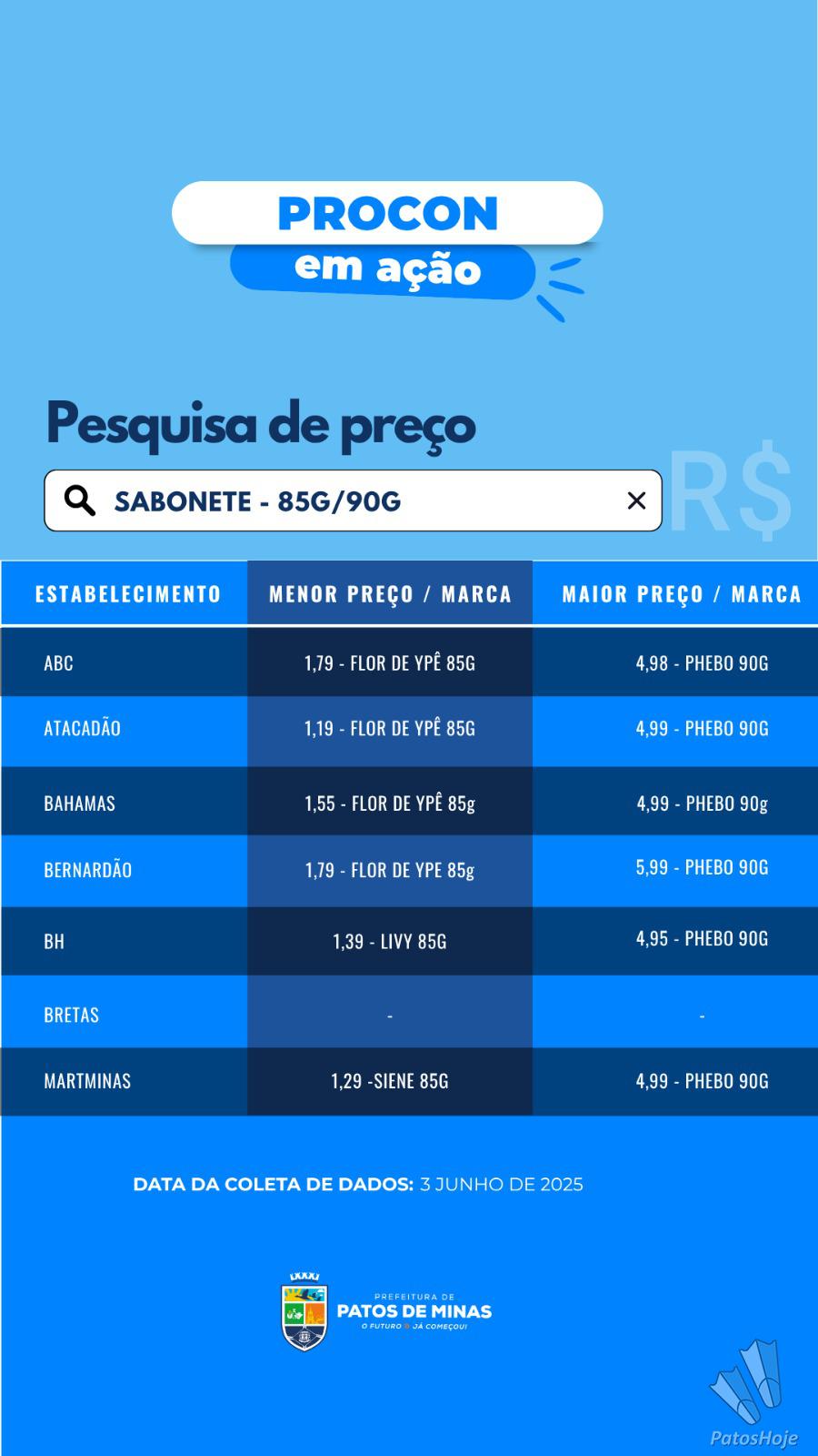 Os preços de outros produtos avaliados podem ser conferidos na galeria de fotos. A pesquisa de preços é realizada mensalmente pelo Procon de Patos de Minas, em parceria com uma faculdade da cidade.