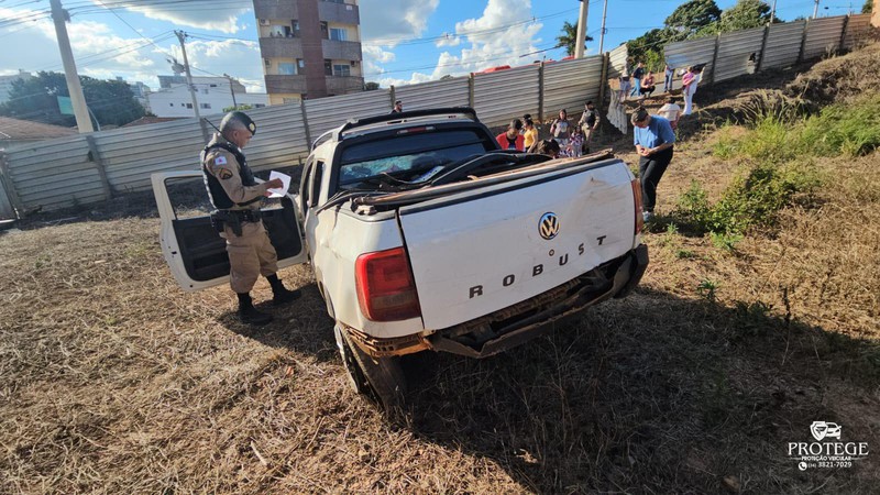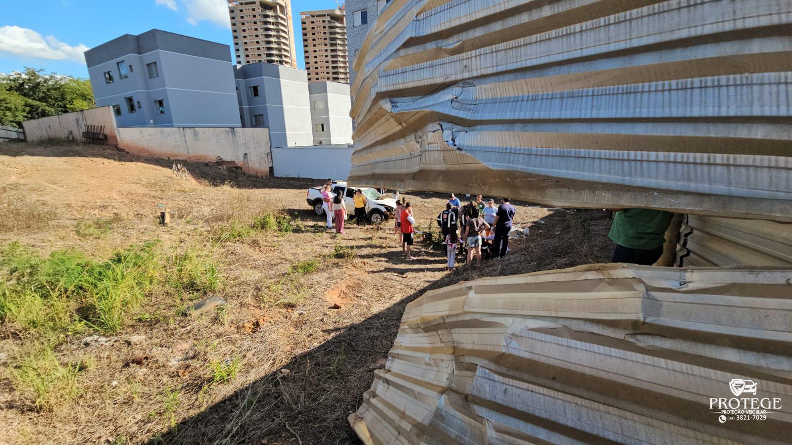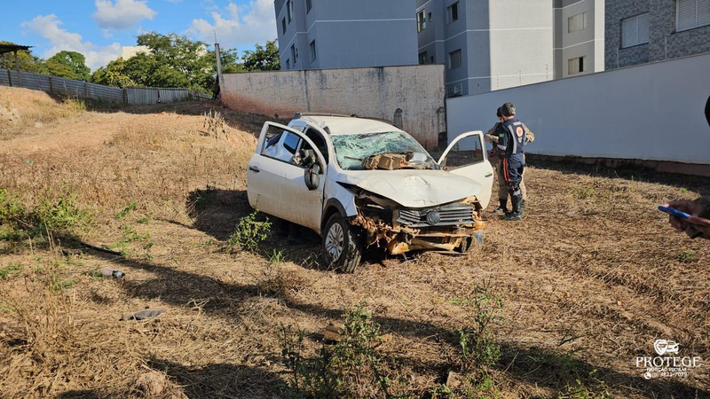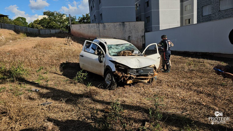 O veículo voltou de ré e, desgovernado, derrubou a proteção metálica de um lote vago e capotou. O terreno é desconcertado e teve um forte aclive. Os vizinhos correram para fazer o socorro ao condutor e acionaram o Samu, mas foi somente um susto.