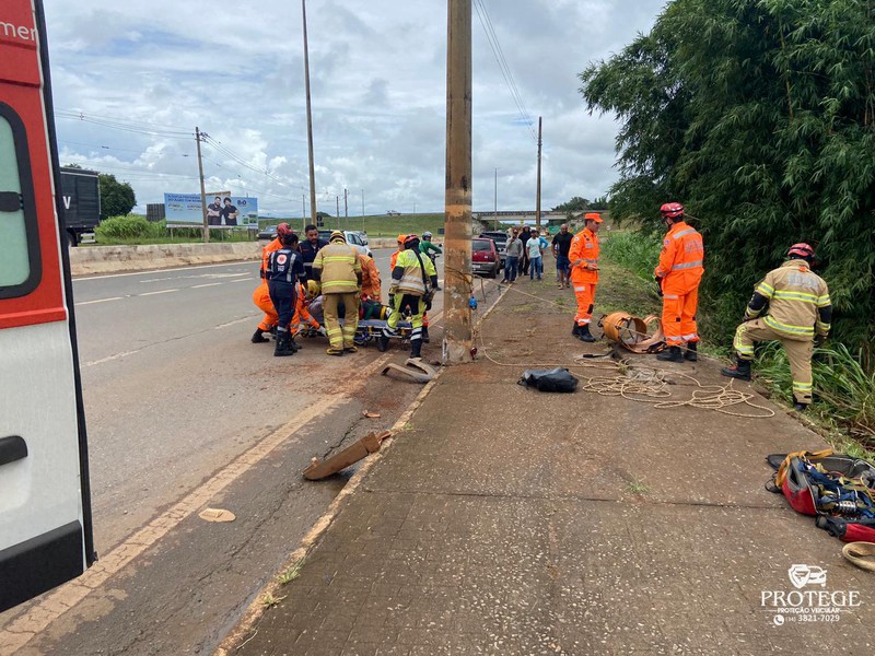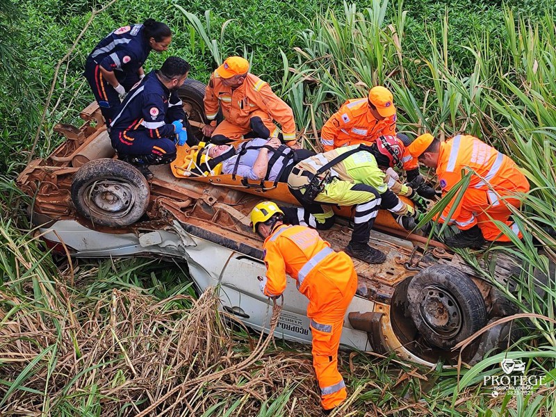 O SAMU e o Corpo de Bombeiros foram acionados e rapidamente foram até o local. De acordo com o sargento Vieira, do Corpo de Bombeiros, quando os militares chegaram, encontraram a mulher fora do veículo recebendo os primeiros atendimentos do SAMU. Os bombeiros montaram uma operação de resgate e retiraram a mulher do local.