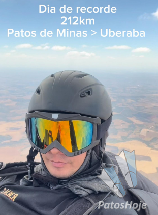 O piloto patense de parapente Willian Amorim alcançou um feito histórico para o esporte em Patos de Minas. Ele decolou da rampa localizada próxima ao distrito do Leal (Lauren’s Paragliding Ramp) e pousou em Uberaba, após percorrer 212 quilômetros em 5 horas e 29 minutos de voo. O resultado representou não apenas um recorde pessoal, mas também o maior voo já registrado a partir da rampa, que foi descoberta há pouco mais de dois anos e possui cerca de 200m de desnível, favorecendo as decolagens.