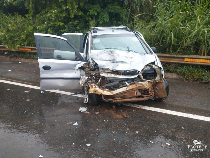 O condutor do GM/Meriva estava acompanhado do filho de 10 anos e contou que seguia no sentido Patos de Minas a Lagoa Formosa quando foi surpreendido pelo caminhão que derrapou na pista, atingiu a contramão e bateu de frente. Uma caminhonete GM/Silverado seguia atrás do GM/Meriva e acabou sendo atingida.