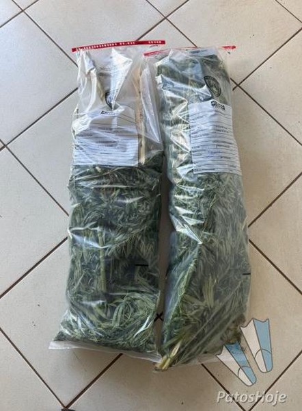 Durante a ação, os policiais que estavam nos fundos avistaram dois pés de maconha de grande porte, com aproximadamente dois metros de altura cada, cultivados no quintal. Questionado, ele afirmou que os objetos furtados seriam trocados por drogas e que as plantas eram "hermafroditas" e destinadas a uso próprio.