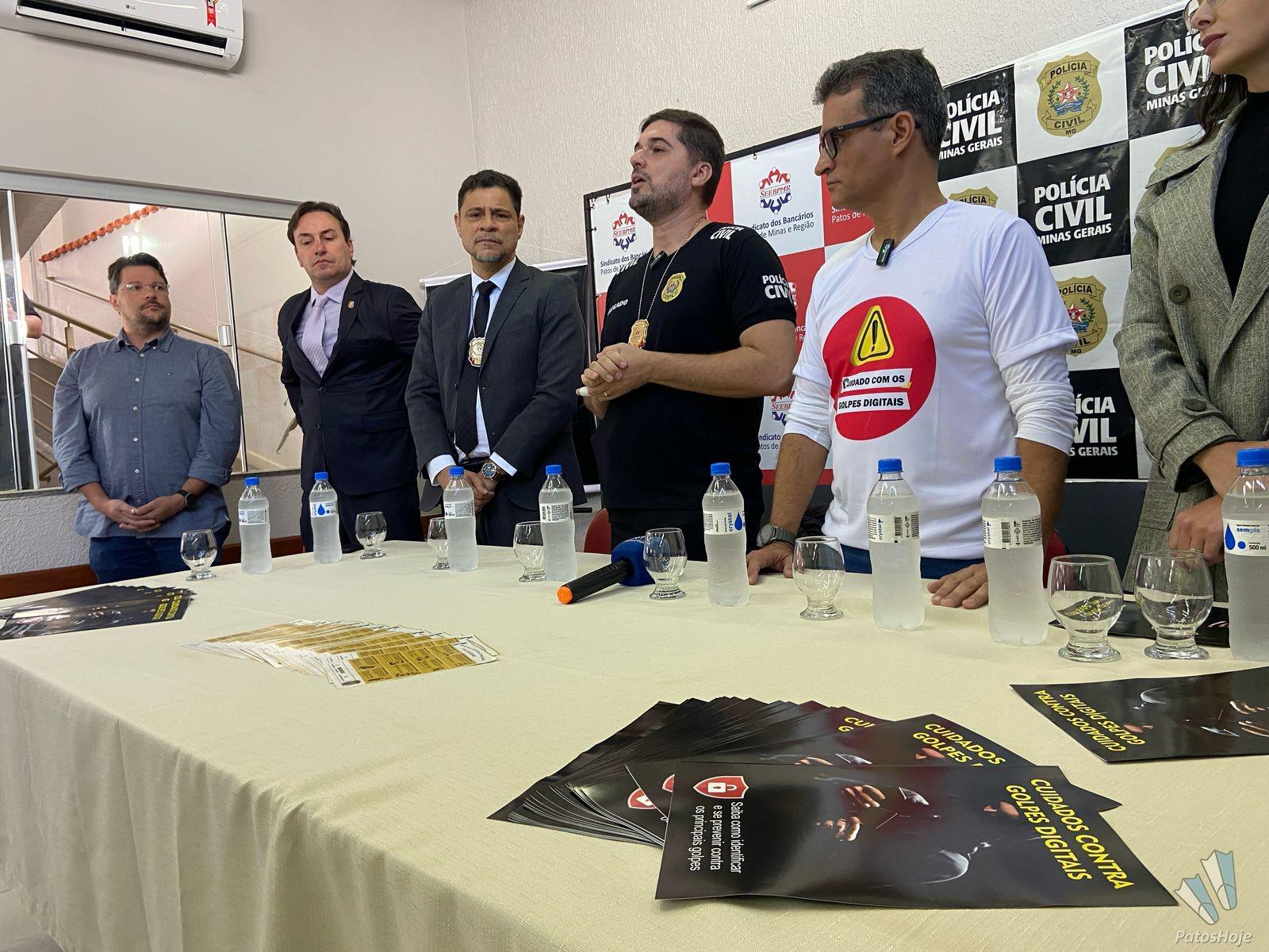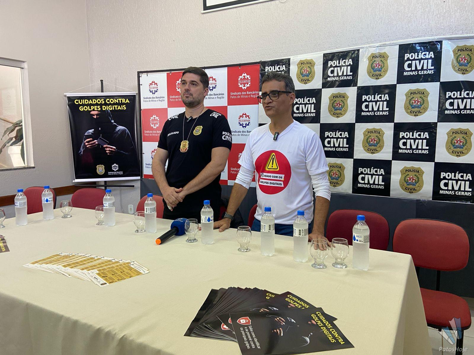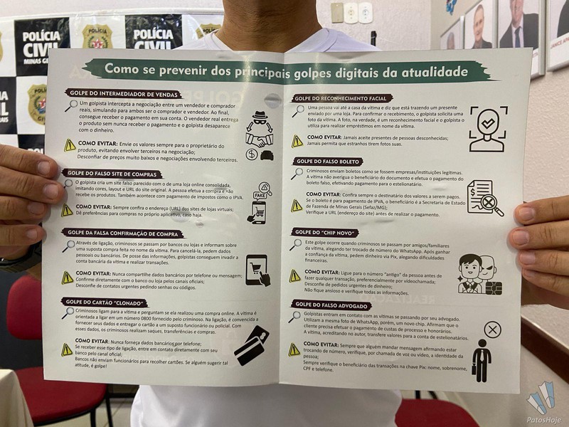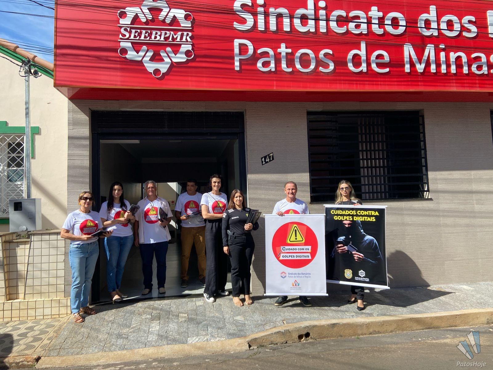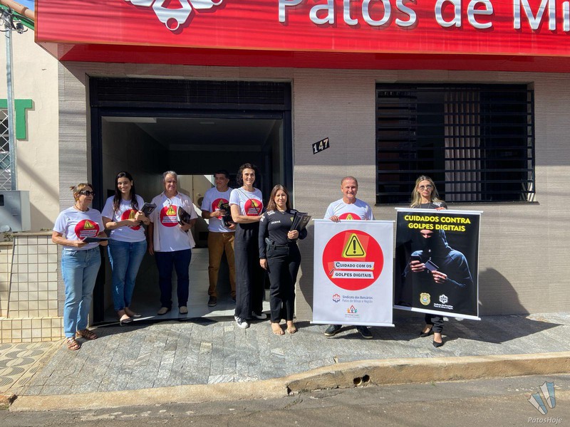 A Polícia Civil e o Sindicato dos Bancários de Patos de Minas e Região iniciaram, na manhã desta segunda-feira (02), uma campanha de conscientização sobre os diversos golpes que tem ocorrido em todo o país. Panfletos e cartilhas orientativas serão entregues para aqueles que entrarem em estabelecimentos bancários. Em Patos de Minas, diariamente, a Polícia Civil recebe mais de 10 denúncias de estelionatos.