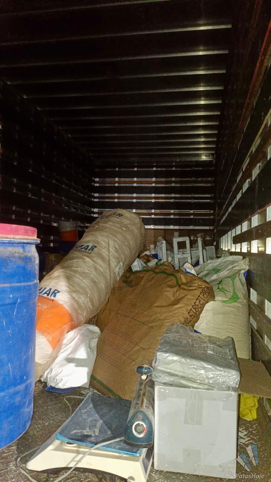 Em continuidade às diligências, os militares foram informados de que parte do material estaria armazenada em outro endereço. No local indicado, também em Patos de Minas, foi localizada uma mulher de 67 anos, que, após esclarecimentos, autorizou a entrada da equipe. No interior da residência, foram apreendidas 25 caixas de cigarros, além de defensivos agrícolas e inseticidas armazenados de forma irregular, alguns deles fracionados em pequenas porções.