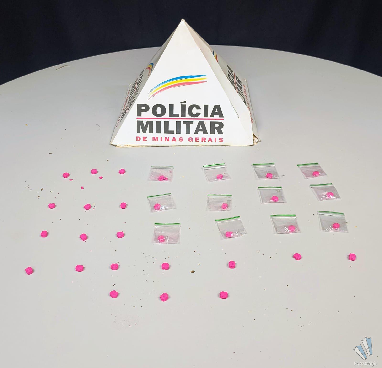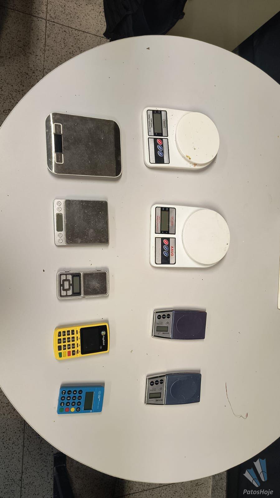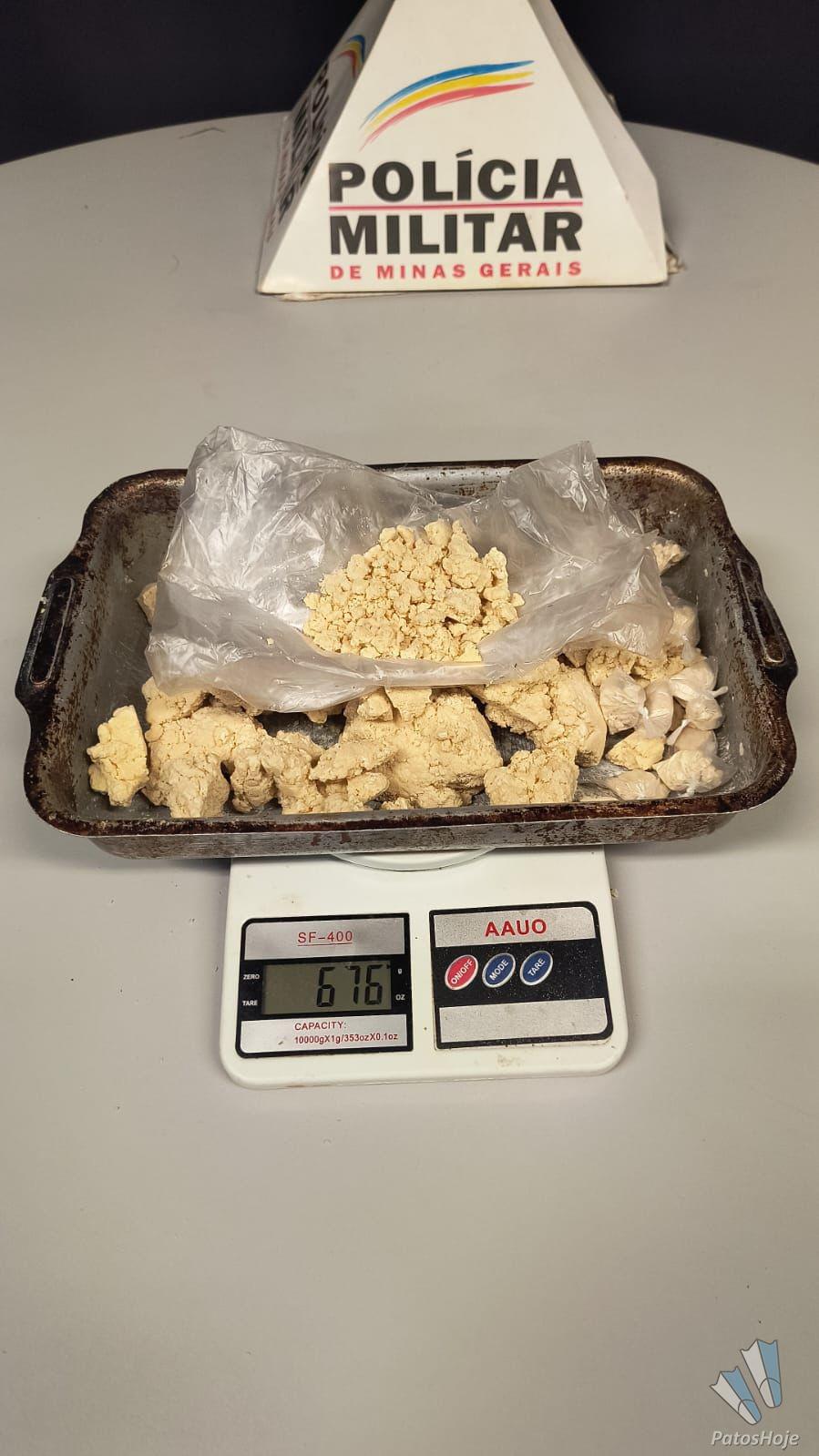 Durante as diligências foram localizados os seguintes materiais que foram apreendidos: 105 porções de pasta base em pedra, Porção de pasta base em farelo, 14 porções de cocaína, 01 porção grande de cocaína, 01 barra grande de cocaína, 01 barra grande de crack, Meia barra de crack, 11 pedras grandes de crack, 10 barras grandes de maconha, 16 tabletes grandes de maconha, 31 comprimidos de ecstasy, 01 pistola calibre 9mm (produto de furto na cidade de Perdizes/MG), diversas munições calibres 9mm e .40, Vários aparelhos celulares, 02 veículos, diversos materiais para refino e dolagem (éteres, formas de aço, sacos, facas, tesoura), 75 frascos e sacos contendo ácido bórico, diversas balanças de precisão e uma quantia em dinheiro não especificada.