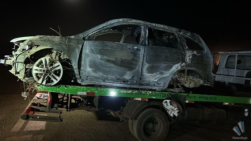 Posteriormente, equipes localizaram, incendiado, um veículo Honda CR-V com placa adulterada, em plantação próxima ao local da interceptação. O veículo, que possivelmente havia sido furtado dias antes em Patrocínio, teve as chamas controladas pelo Corpo de Bombeiros e foi removido ao pátio credenciado.