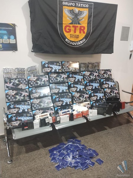 * 37 armas de bolinha de gel, fabricadas na China, acompanhadas de 100 pacotes de munição.