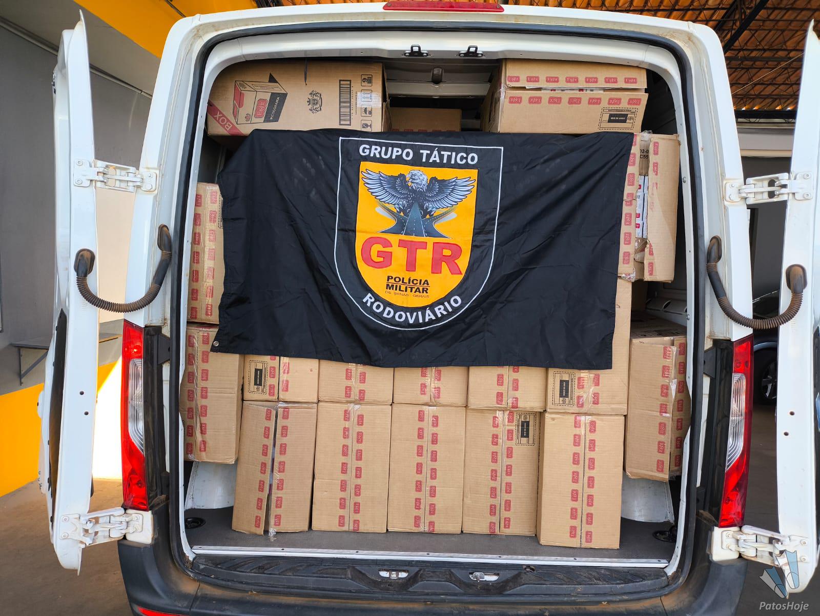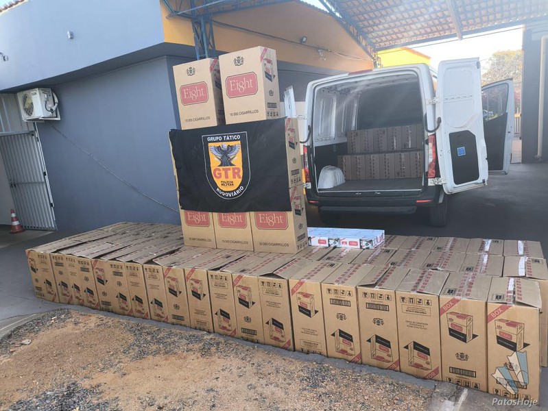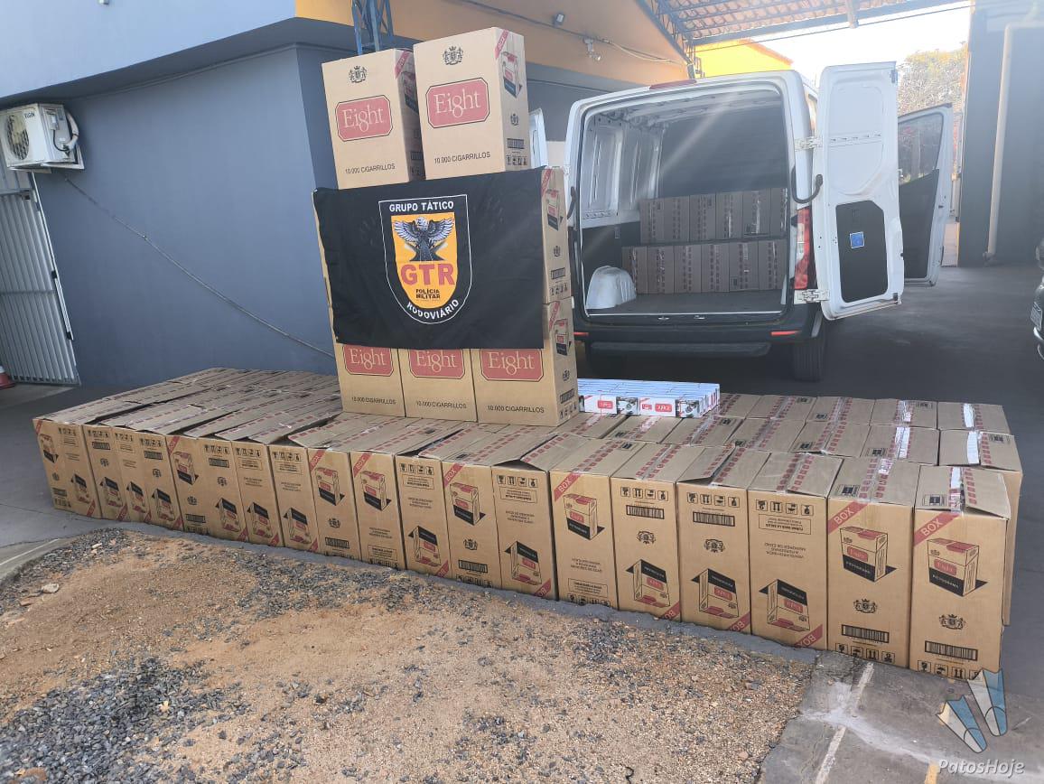 A Polícia Militar Rodoviária (PMRv) apreendeu uma van com uma grande carga de cigarros contrabandeados do Paraguai. A abordagem ocorreu na tarde dessa quinta-feira (21) na BR-352, próximo ao KM 165. O motorista do veículo, um homem de 26 anos, foi preso em flagrante.