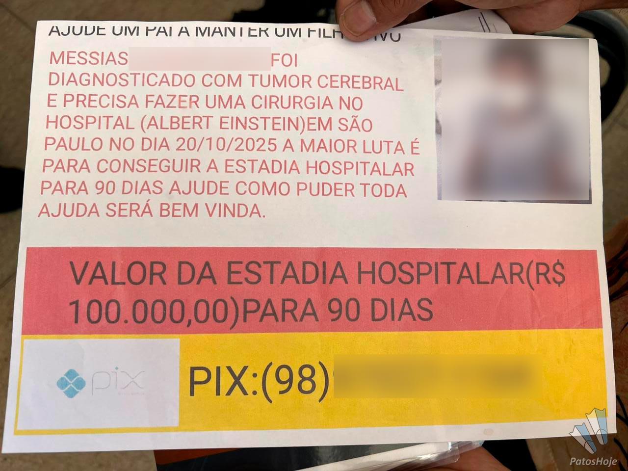 As outras duas casas paroquiais negaram a solicitação do homem, mas ele teria se posicionado em frente as igrejas, no momento das celebrações, e pedido as doações. O homem entregou panfletos informando que o filho foi diagnosticado com tumor cerebral e que precisa fazer uma cirurgia no Hospital Albert Einstein, em São Paulo. O panfleto ainda diz que o garoto teria que ficar 90 dias internado, o que custaria R$100.000,00. O homem pedia doações em Pix para um número de celular do DDD 98, que é do Maranhão.