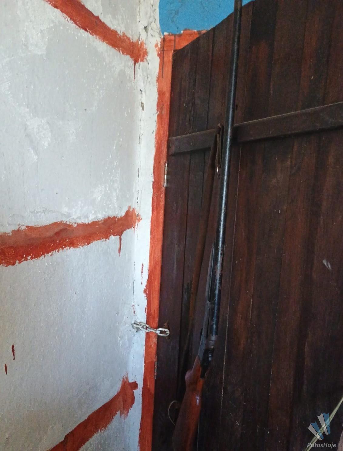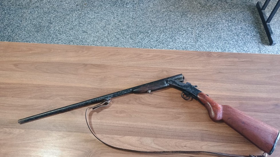 O homem autorizou os policiais a entrarem na residência para verificar a denúncia. Durante as buscas, foi localizada, atrás da porta do quarto do abordado, uma espingarda calibre 28, desmuniciada. Nenhuma munição foi encontrada no local. O suspeito relatou que não consegue adquirir munições por não possuir o registro da arma.