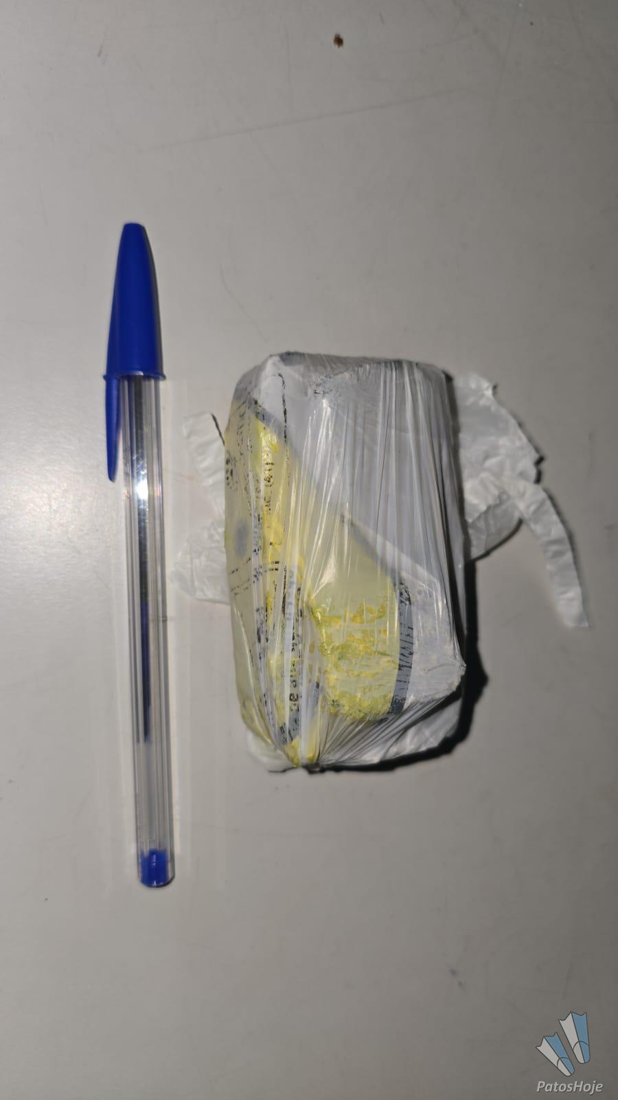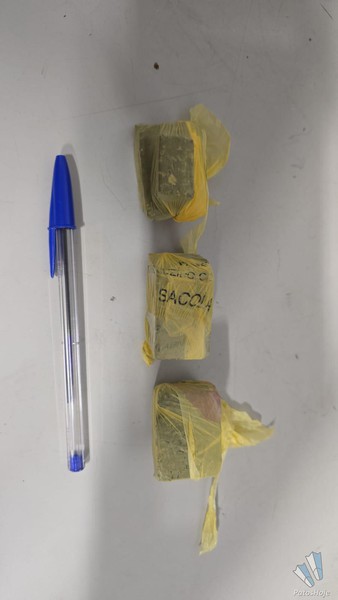 Com apoio de outras viaturas, os policiais iniciaram buscas nas imediações e encontraram o jovem em atitude suspeita em frente a um sobrado na Rua Mucuri. Ao avistar os agentes, o jovem tentou evitar a abordagem, mas foi interceptado. Durante a revista pessoal, os militares encontraram três tabletes de maconha prensada no bolso de sua blusa.