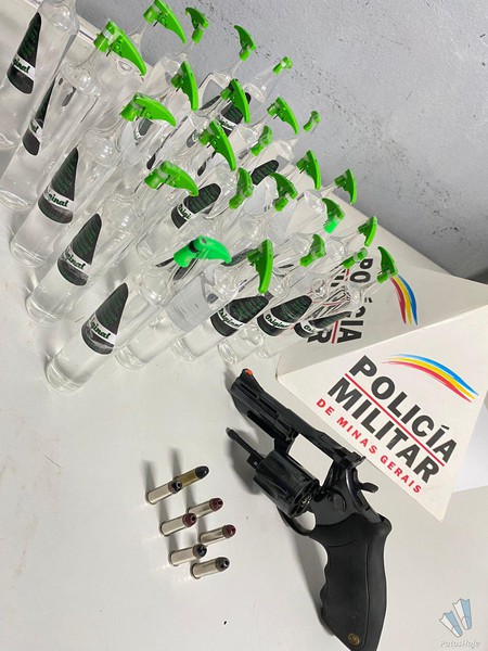 Na caixa que ele carregava, foram encontrados 25 frascos de lança-perfume (etiquetados como "Original"). Também foram apreendidos 1 revólver Taurus calibre .38 com numeração raspada; 7 munições intactas (.38, marca CBC); e 1 celular Motorola cor preta.