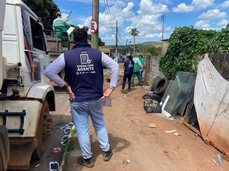 A Prefeitura de Patos de Minas, com apoio da Polícia Militar, cumpre mandados de limpeza em residências no bairro Nossa Senhora Aparecida. Ambos os endereços, ligados ao mesmo casal, estavam abarrotados de lixo. A limpeza começou nesta terça-feira (27) e seguirá, pelo menos, ao longo da semana. Os moradores sofrem da Síndrome de Diógenes, caracterizada pelo acumulo excessivo de lixo.