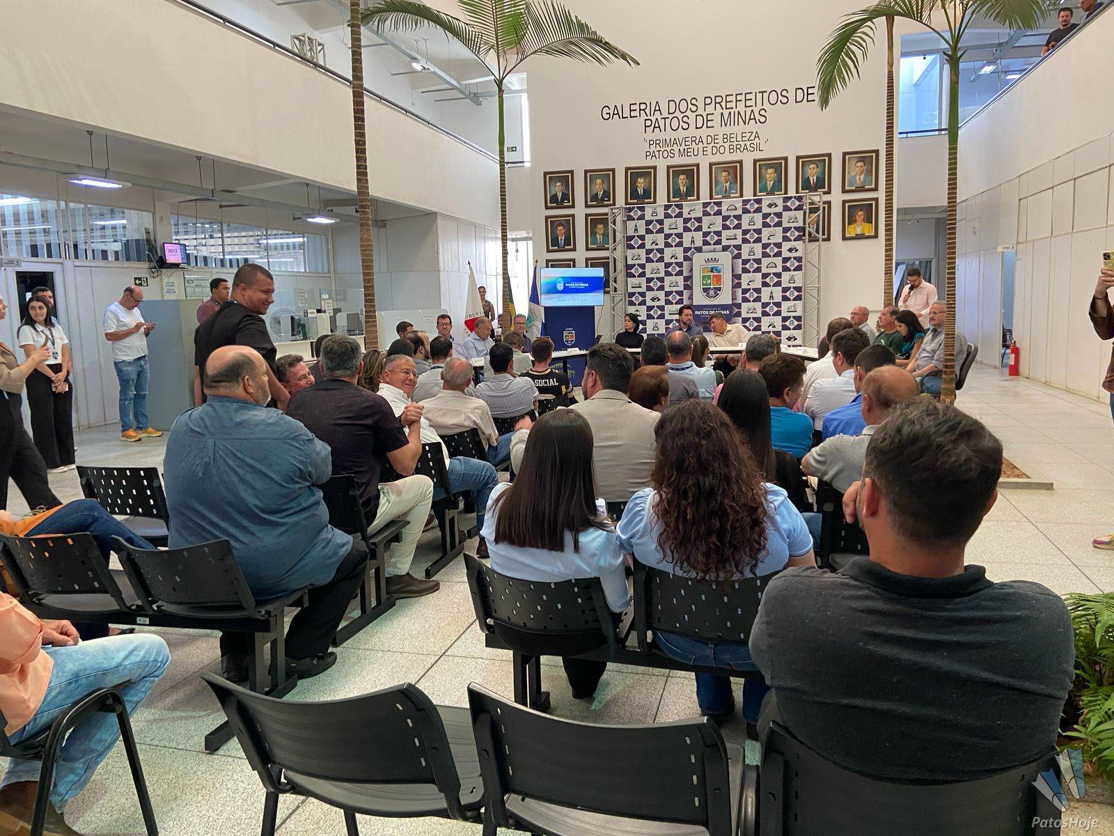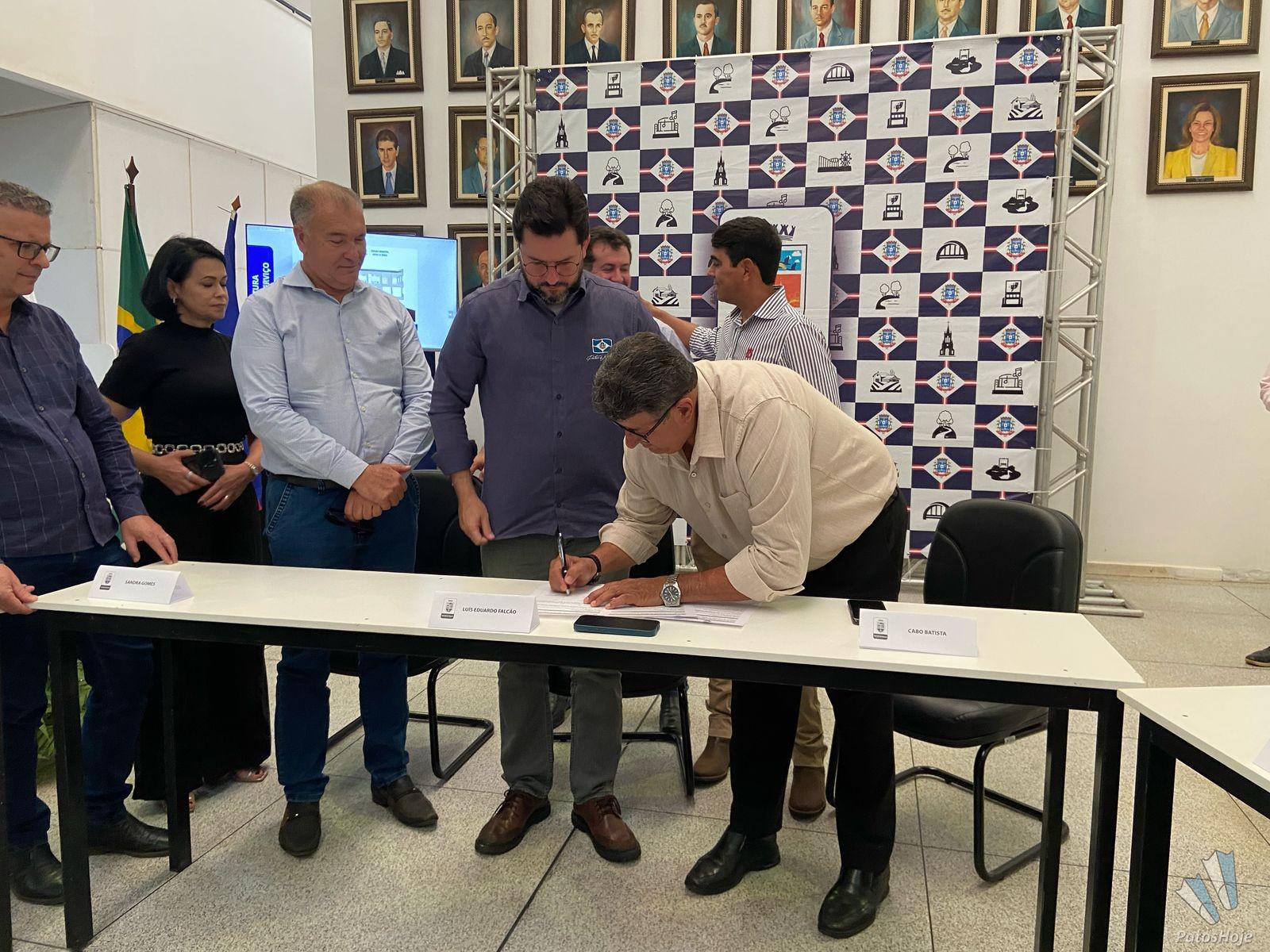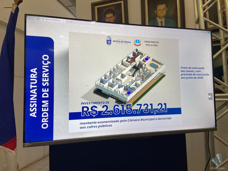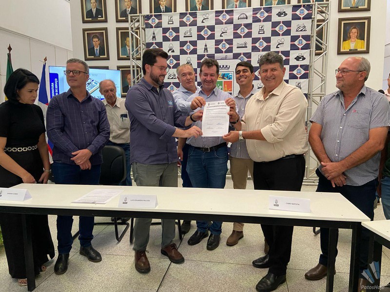 O prefeito de Patos de Minas, Luís Eduardo Falcão, e o Presidente da Câmara de Vereadores, Cabo Batista, assinaram a ordem de serviço para revitalização do Palácio dos Cristais. O prédio será a casa do legislativo patense, após a conclusão da reforma. A assinatura aconteceu, na tarde desta sexta-feira (08), no saguão da Prefeitura Municipal.