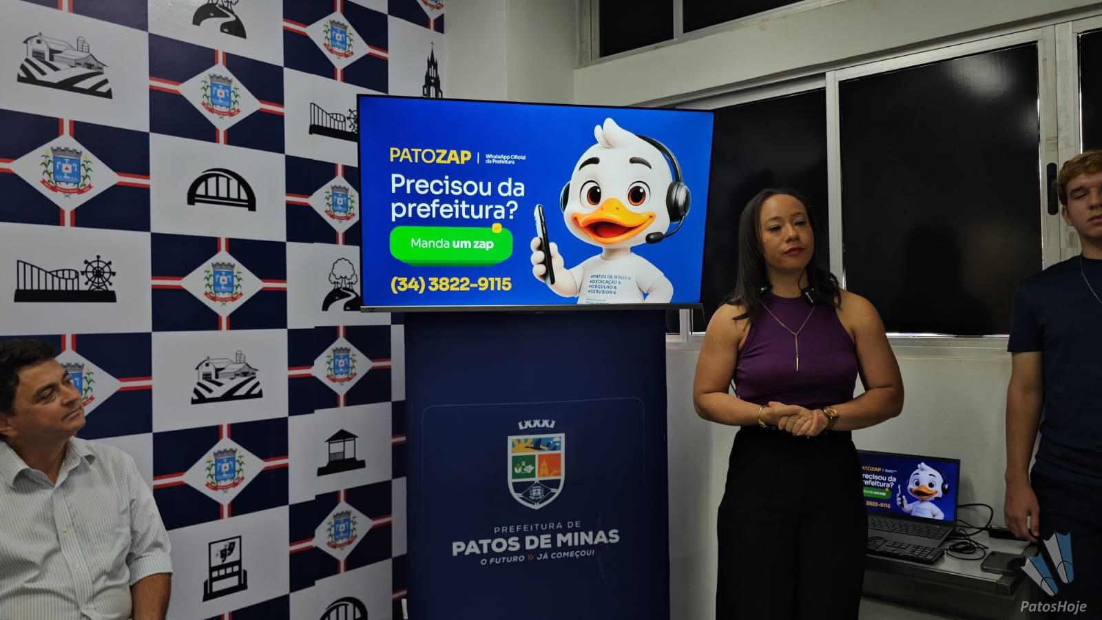 A Prefeitura de Patos de Minas apresentou, na manhã desta segunda-feira (08), o PatoZap, novo canal oficial de atendimento ao cidadão pelo WhatsApp. O serviço, disponível pelo número (34) 3822-9115 , promete facilitar o acesso da população aos serviços municipais, oferecendo uma alternativa rápida, prática e segura diretamente no celular.