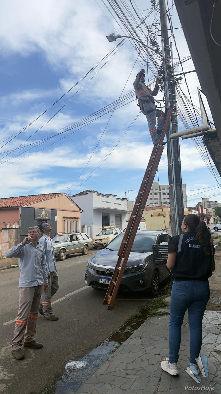 Um mutirão para retirada de fios soltos e inservíveis está sendo realizado, nesta segunda-feira (9), na rua Silva Guerra, no Centro, de Patos de Minas. A ação faz parte de um trabalho que já está em andamento no município para eliminar fios que oferecem riscos à população e também prejudicam a estética das vias públicas.