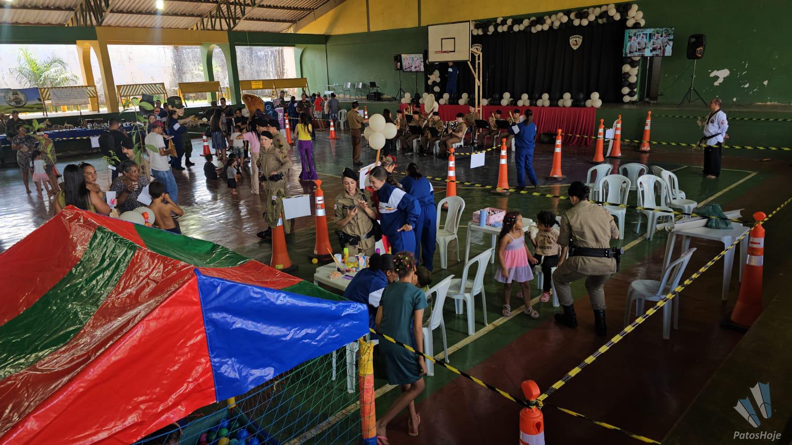 Pipoca, algodão doce, produtos Cemil, brincadeiras, jogos animaram o público. A criançada dançou ao som da banda de música da Polícia Militar. Também teve distribuição de mudas de árvores, serviços de saúde, feira de adoção de animais e aulas de artes marciais.