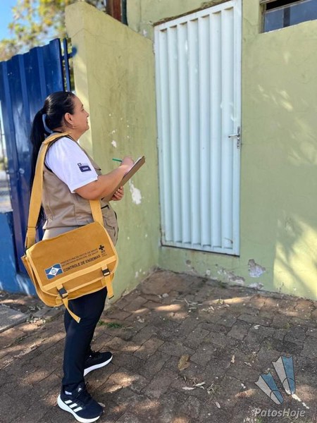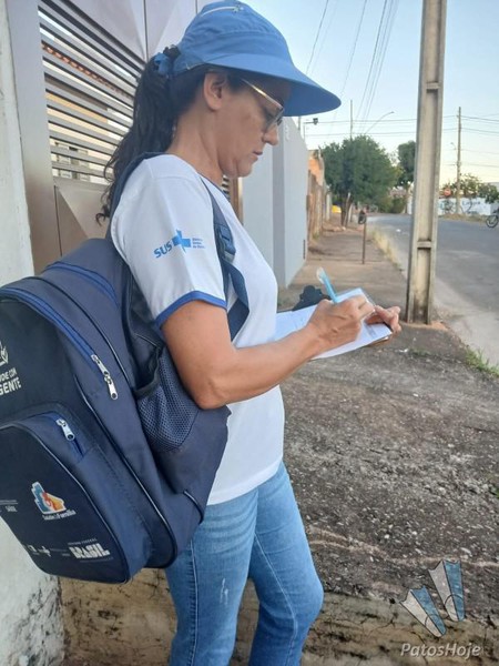 As agentes trabalham com uniformes da Prefeitura de Patos de Minas.