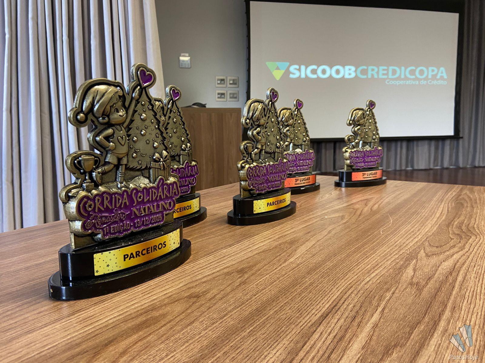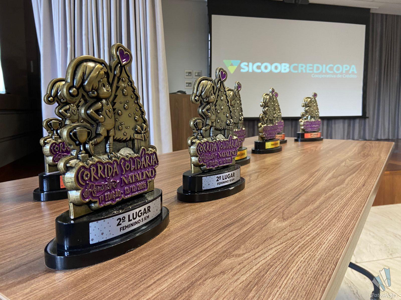 O Sicoob Credicopa entregou, na tarde desta segunda-feira (12), as premiações para os corredores que se destacaram na Corrida do Renascer Natalino. Ao todo, 20 atletas foram premiados, sendo os homens e mulheres que ficaram entre os cinco primeiros, nos percursos 5km e 10km. Além de troféus, os melhores colocados receberam prêmios em dinheiro.
