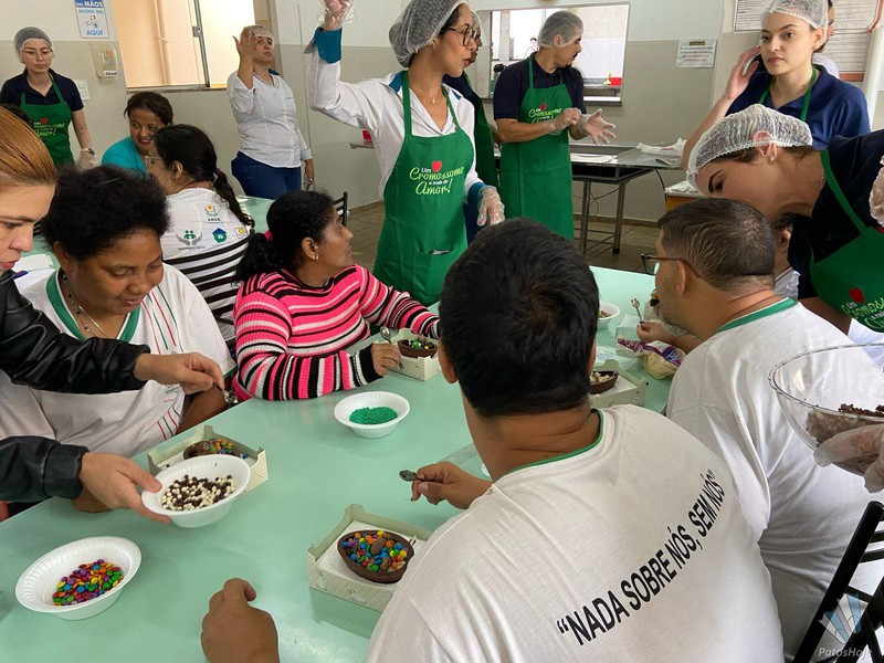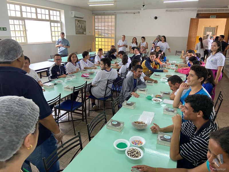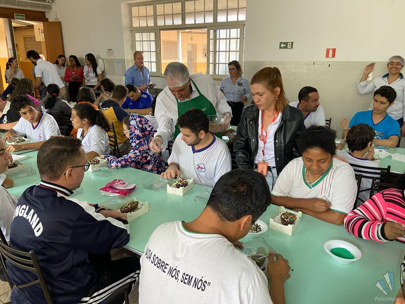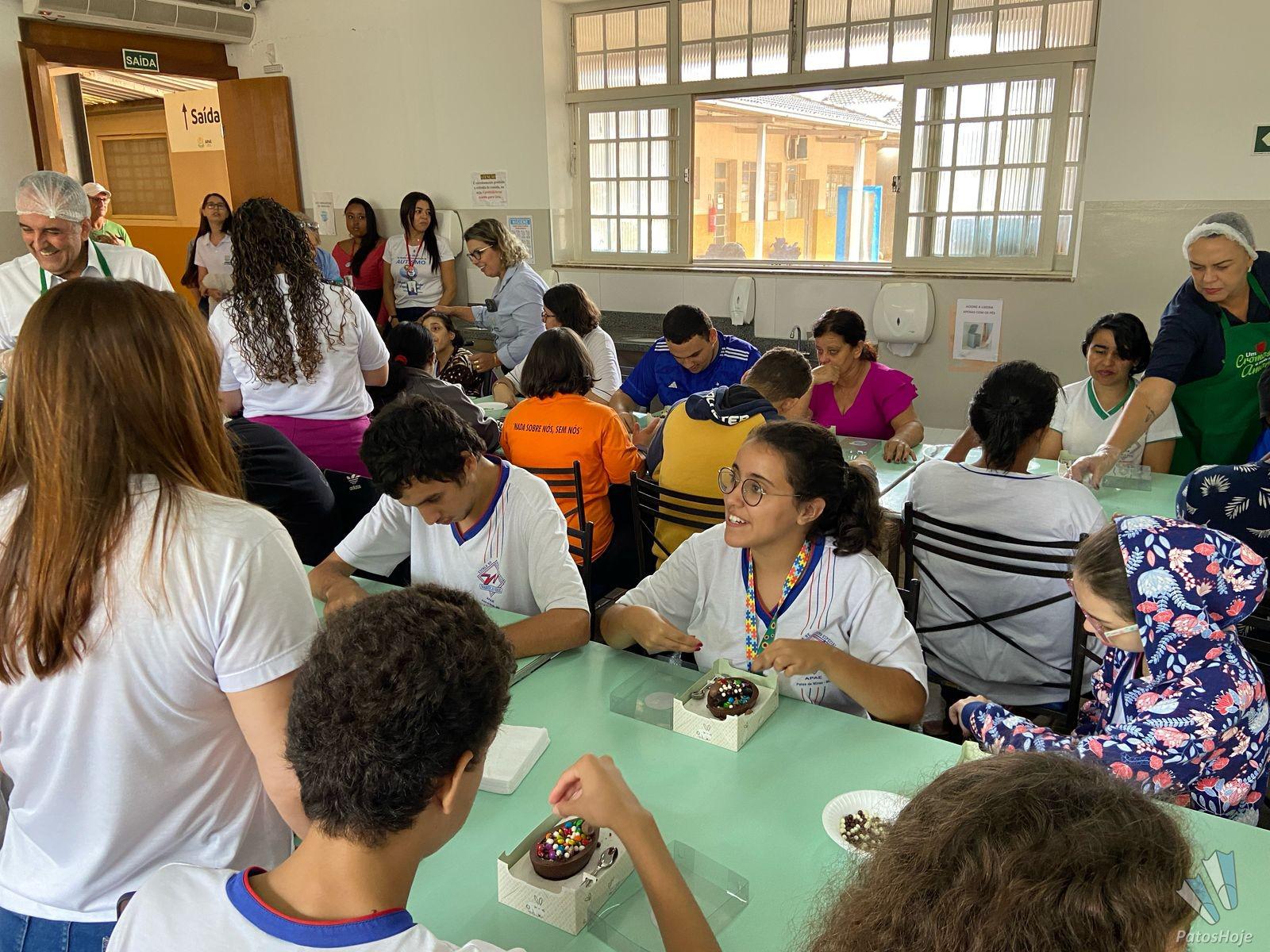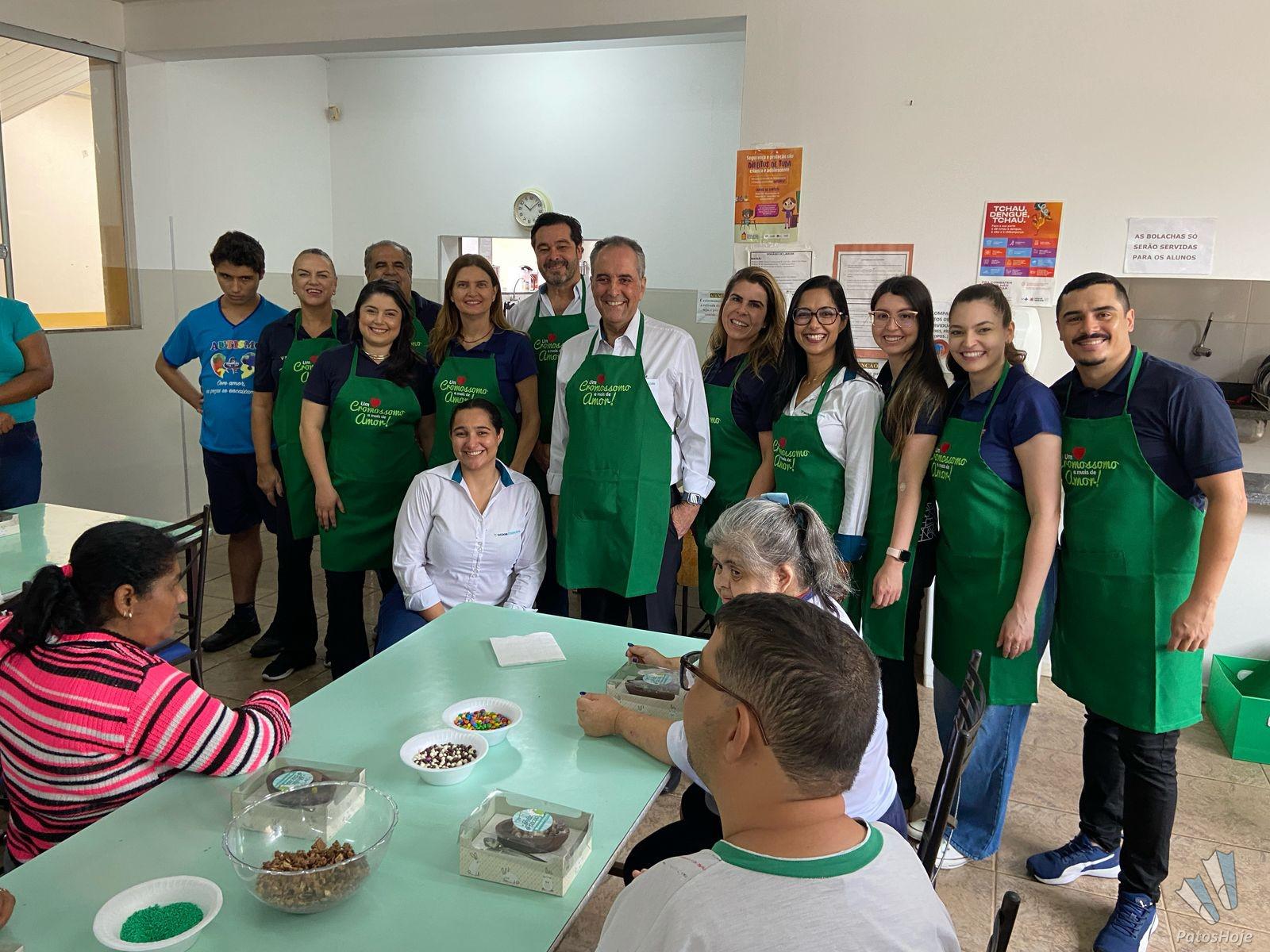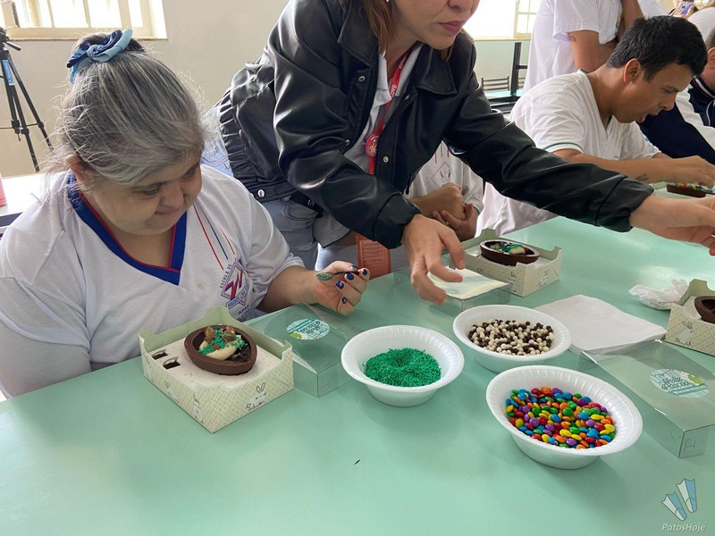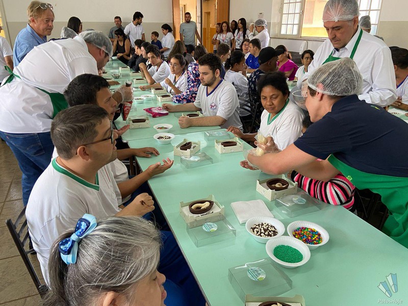 A manhã dos assistidos pela Associação de Pais e Amigos dos Excepcionais (APAE) de Patos de Minas foi ‘achocolatada’, graças a ação do Sicoob Credicopa, nesta quarta-feira (16). Foram servidos ovos de pascoa, no qual cada um pode montar com vários doces e guloseimas. A Administradora da APAE, Elisangela Fernandes, destacou que a ação proporcionou um momento único para cada um. Gesto faz parte da campanha “Um Cromossomo a mais de Amor! ”.