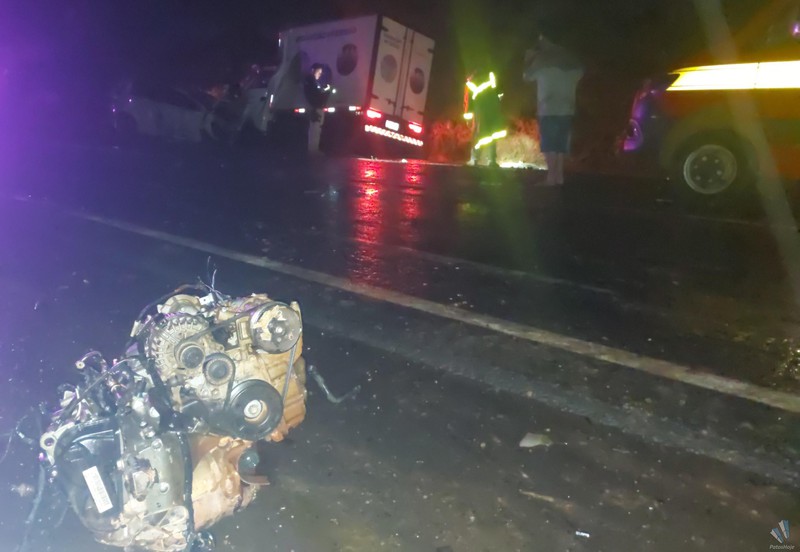 O gravíssimo acidente aconteceu no início da noite desta sexta-feira (14), no km 431 da BR 365, mais uma vez próximo ao trevo de Santana de Patos, em Patos de Minas. Duas mulheres morreram no local. Outros dois homens foram socorridos em estado grave. Como no acidente de ontem, três veículos se envolveram na batida. O impacto foi tão violento que o motor do automóvel foi parar no meio da pista.