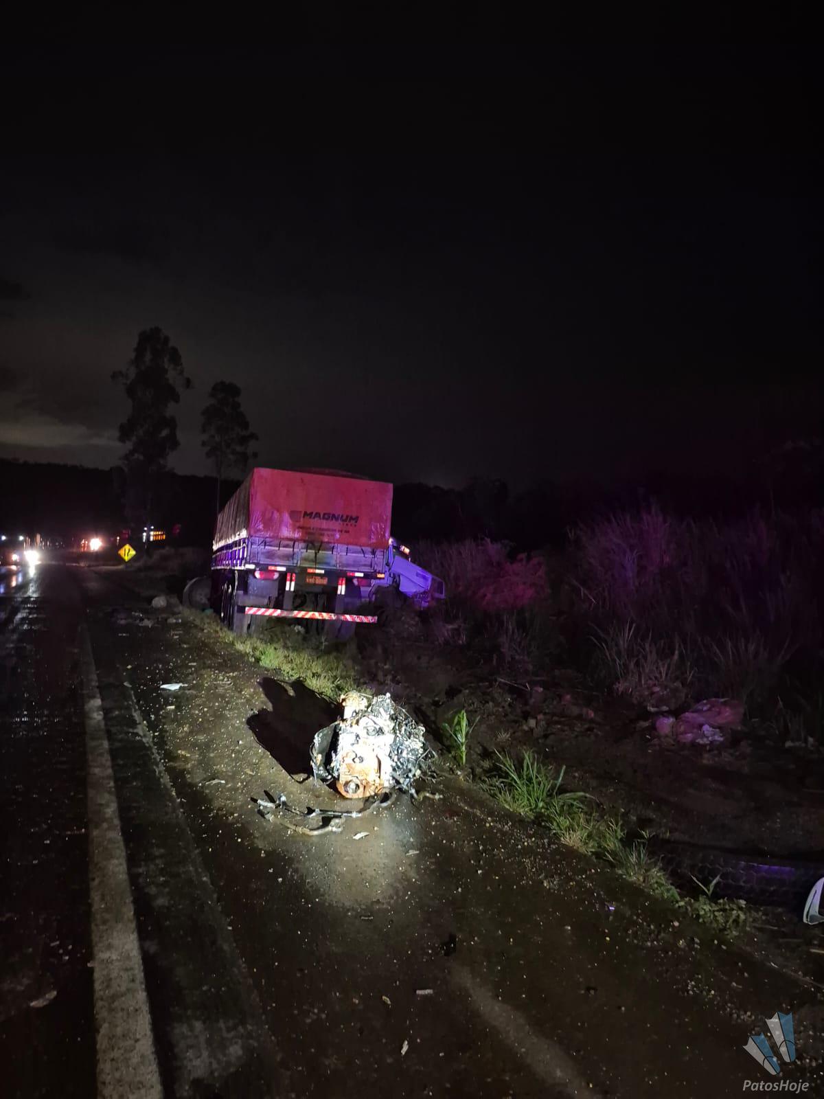 A dinâmica apurada conversando com o condutor da carreta é de que a carreta seguia de Patrocínio para Patos de Minas e, em uma descida, aquaplanou na pista e fez um L apontando para a direita, vindo a atingir, primeiramente, o automóvel Polo, onde estavam as quatro vítimas, e depois um pequeno caminhão Hyundai HR.