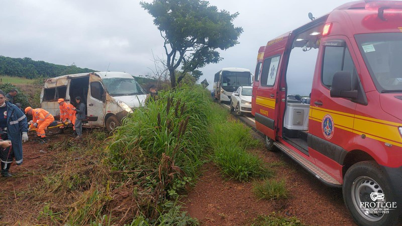 Segundo as informações iniciais do Corpo de Bombeiros, o veículo transportava funcionários de uma empresa da região quando o condutor perdeu o controle da direção. A van saiu da pista e capotou, parando na faixa de domínio da rodovia.