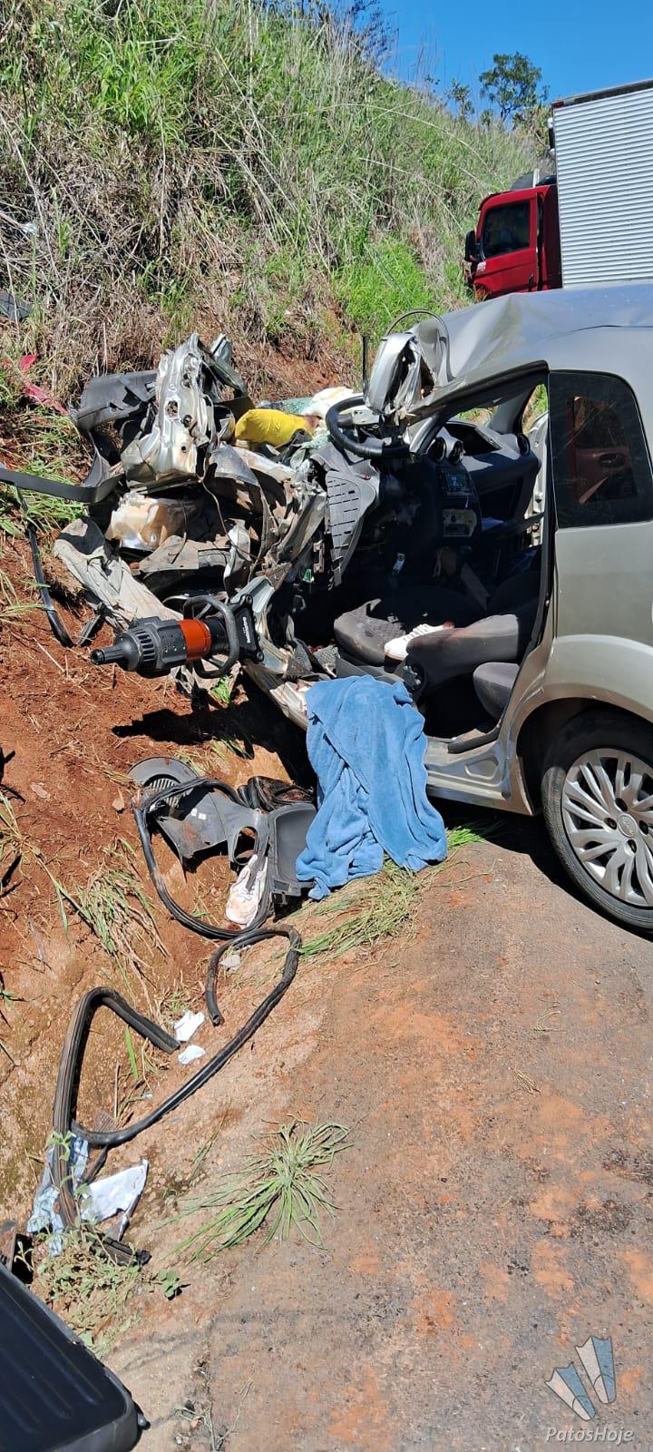 De acordo com o Corpo de Bombeiros, o caminhão transportava iogurtes de Pará de Minas para Patrocínio. Ao chegar ao local, as equipes constataram que o veículo de passeio, de placa NFZ-0218, permanecia sobre as quatro rodas, apresentando forte deformação na parte frontal e na lateral do lado do motorista. A condutora estava presa às ferragens.