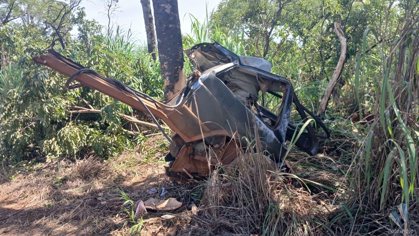 Um motorista de 38 anos ficou gravemente ferido após um acidente na tarde desta terça-feira (10) na MG-188, no município de Unaí. O carro que ele conduzia ficou completamente destruído após sair da pista e bater contra uma árvore.