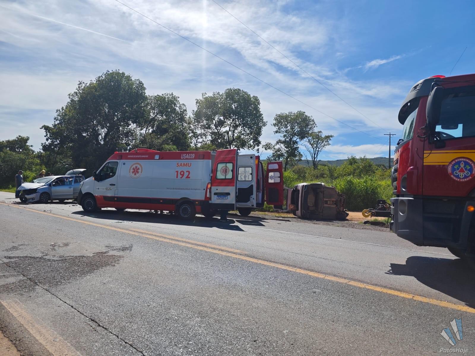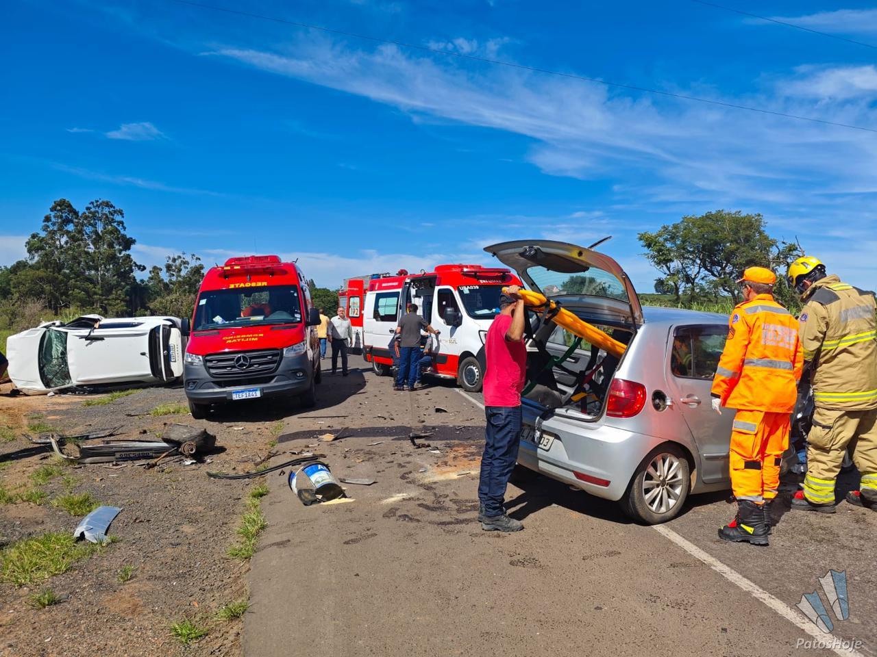 O Corpo de Bombeiros foi acionado e constatou que três pessoas ficaram feridas. A condutora do VW Fox, uma mulher de 65 anos, apresentava laceração na mão direita, ferimento na perna direita e diversas escoriações pelo corpo. Ela foi retirada do veículo pelo Corpo de Bombeiros em conjunto com a equipe do Samu, que deu continuidade ao atendimento pré-hospitalar e realizou o encaminhamento da vítima para a Santa Casa de Patrocínio.