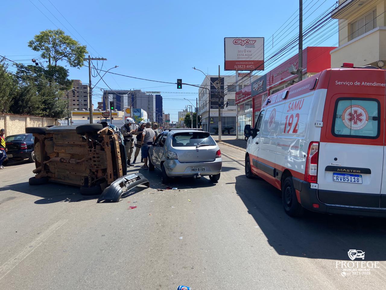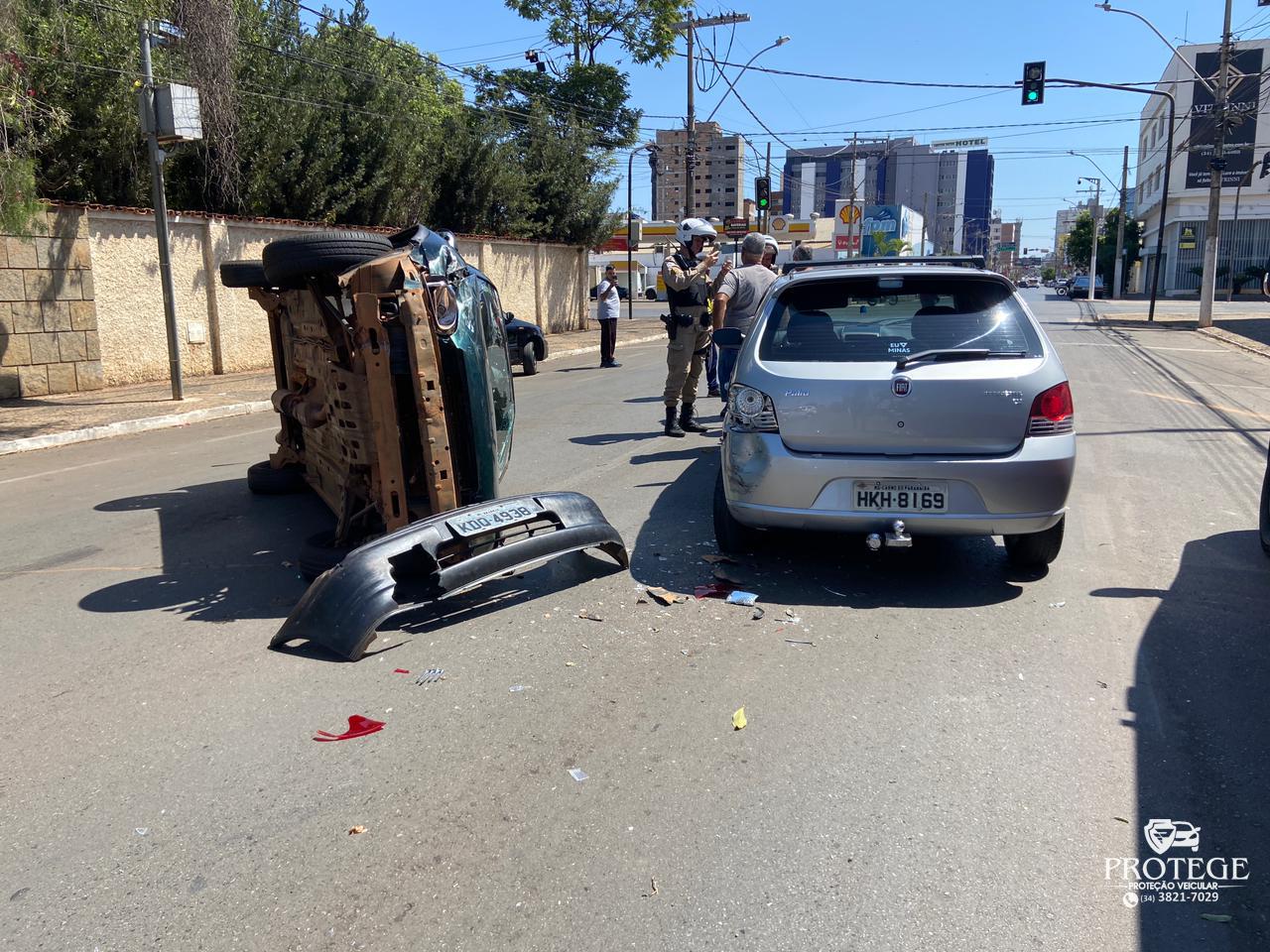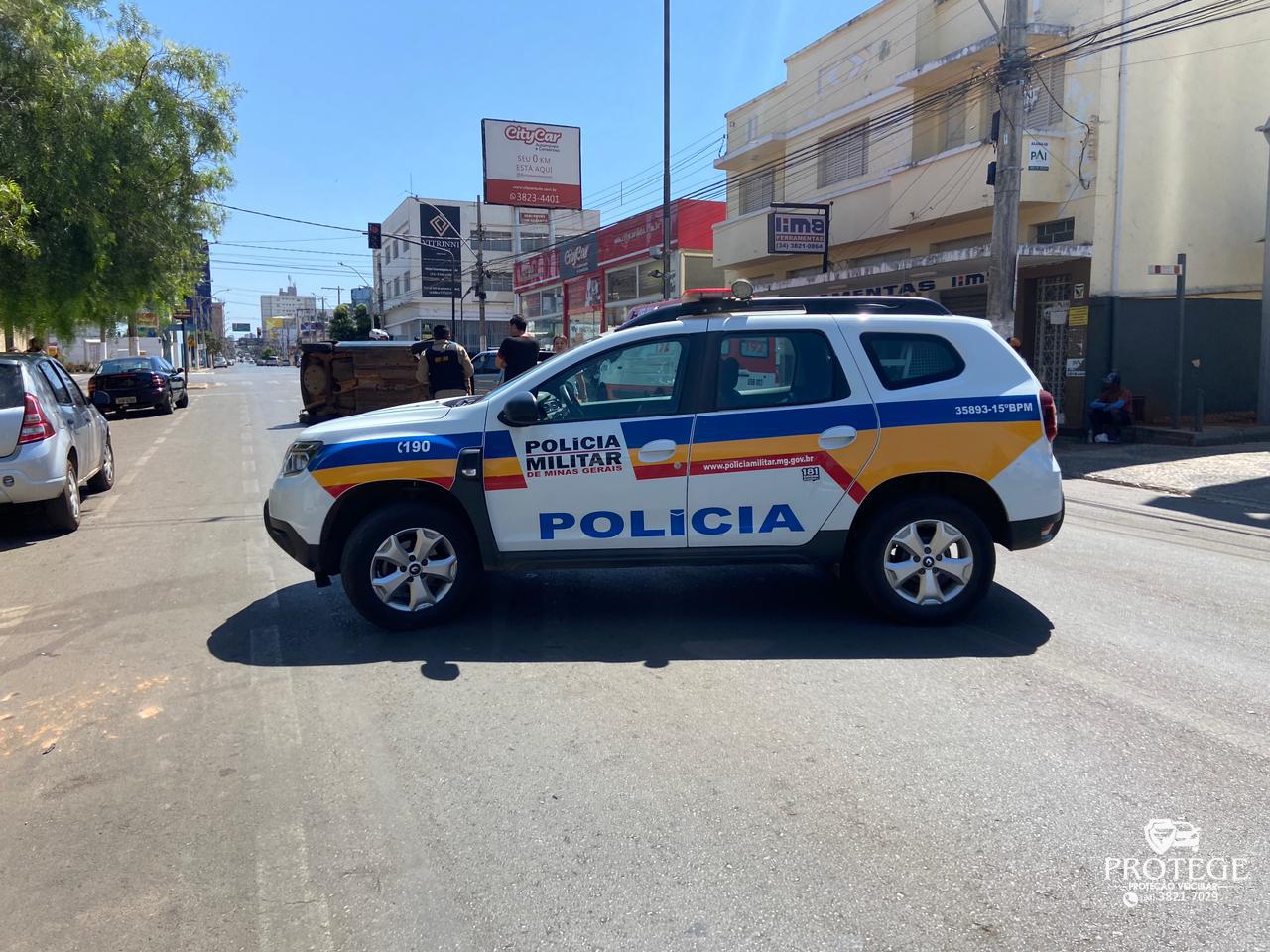 Um acidente de trânsito parou a rua Major Gote, no centro de Patos de Minas, na manhã deste domingo (21). Um Corsa/Wind bateu na traseira de um Fiat/Palio e parou tombado no meio da pista. O condutor do Corsa ficou ferido.