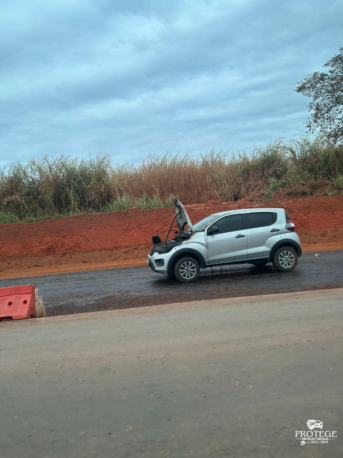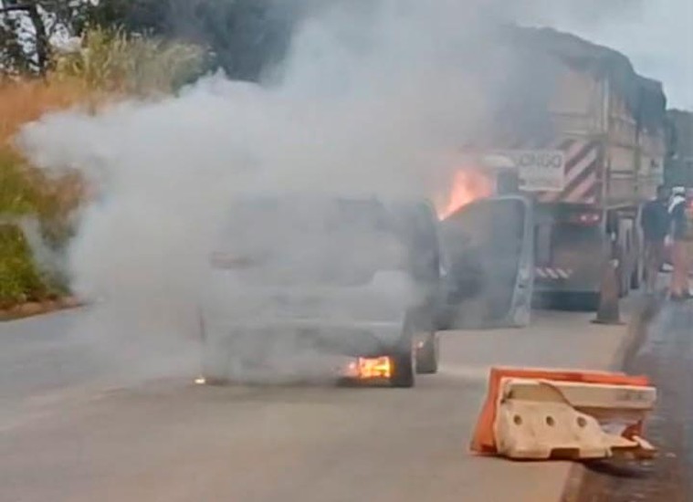 Um veículo pegou fogo na manhã desta segunda-feira (14), no km 169 da rodovia MGC-354, entre as cidades de Presidente Olegário e Patos de Minas. Imagens feitas por terceiros mostram as chamas se alastraram na parte da frente do carro.