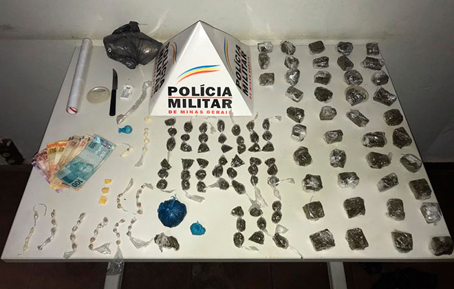 Os policiais encontraram também materiais para fracionar e embalar as drogas, R$490,00 em cédulas diversas e um aparelho celular. Diante dos fatos, o jovem recebeu voz de prisão e foi encaminhado para a delegacia de plantão de Patrocínio.