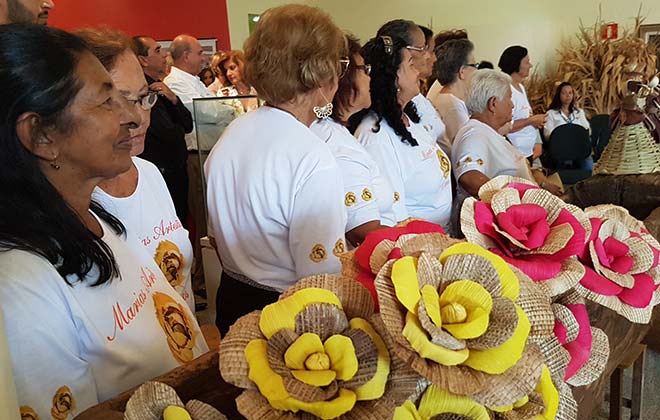 Três Marias foram designadas para contar a história da Associação das Marias Artesãs. Maria Moreira contou que o trabalho começou pequeno, em um espaço improvisado, com apenas seis integrantes. A matéria prima era a fibra do algodão, mas não demorou e as Marias foram acolhidas pelo Sindicato Rural e pela Casa da Cultura do Milho, ganhando novas possibilidades.